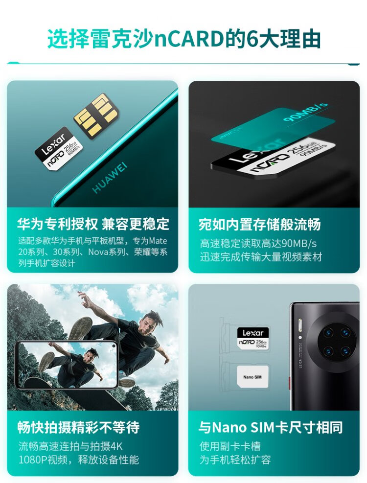 Lexar 256GB NM memory card (NM CARD) Huawei Honor mobile phone and tablet memory card, suitable for Mate/nova/P multiple series, smooth shooting and storage