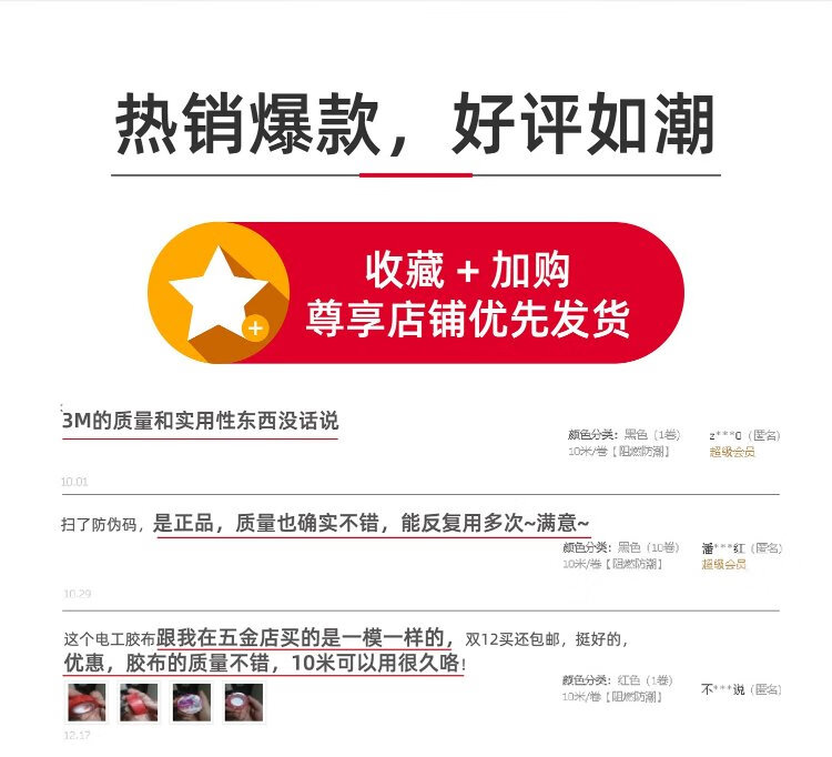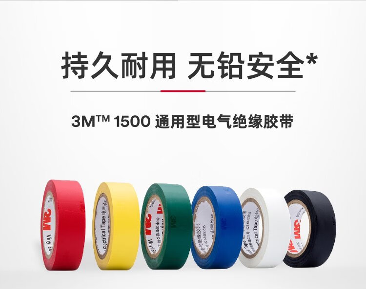 3M 1500# Electrical Tape Electrical Insulating Tape PVC Electrical Tape Lead-free 600V Moisture-proof Acid and Alkali Resistant Red 18mm*10m*0.13mm 1 barrel (10 rolls)