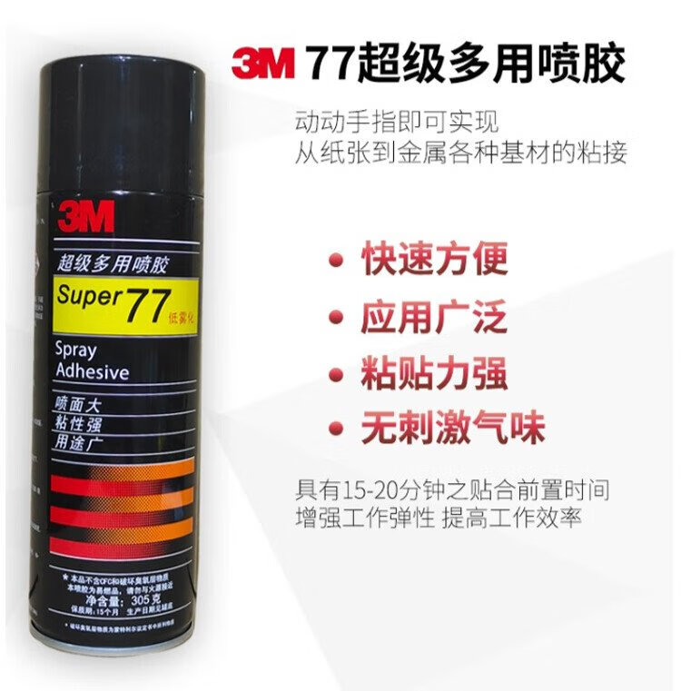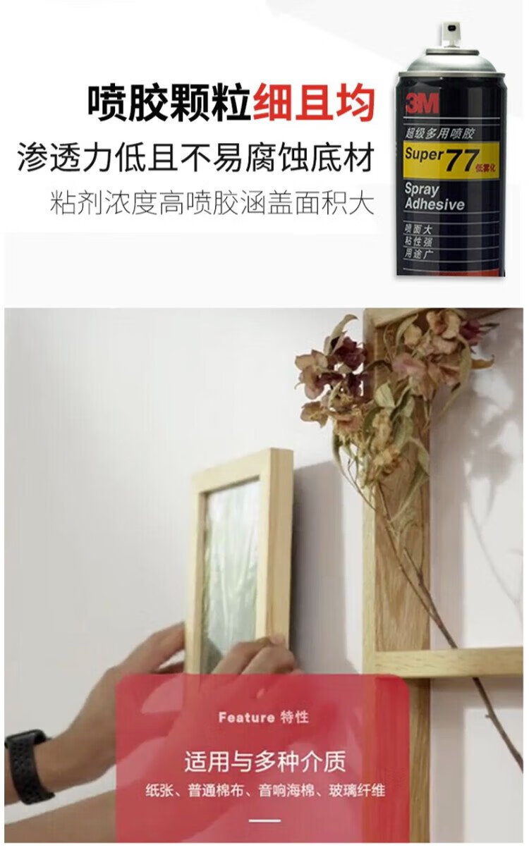 3M 77 spray glue multi-functional strong high atomization low penetration car ceiling paper cloth metal wallpaper universal spray glue 124g/can