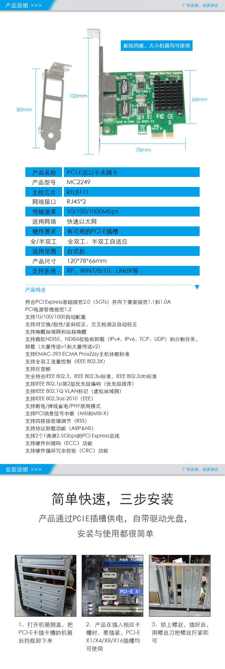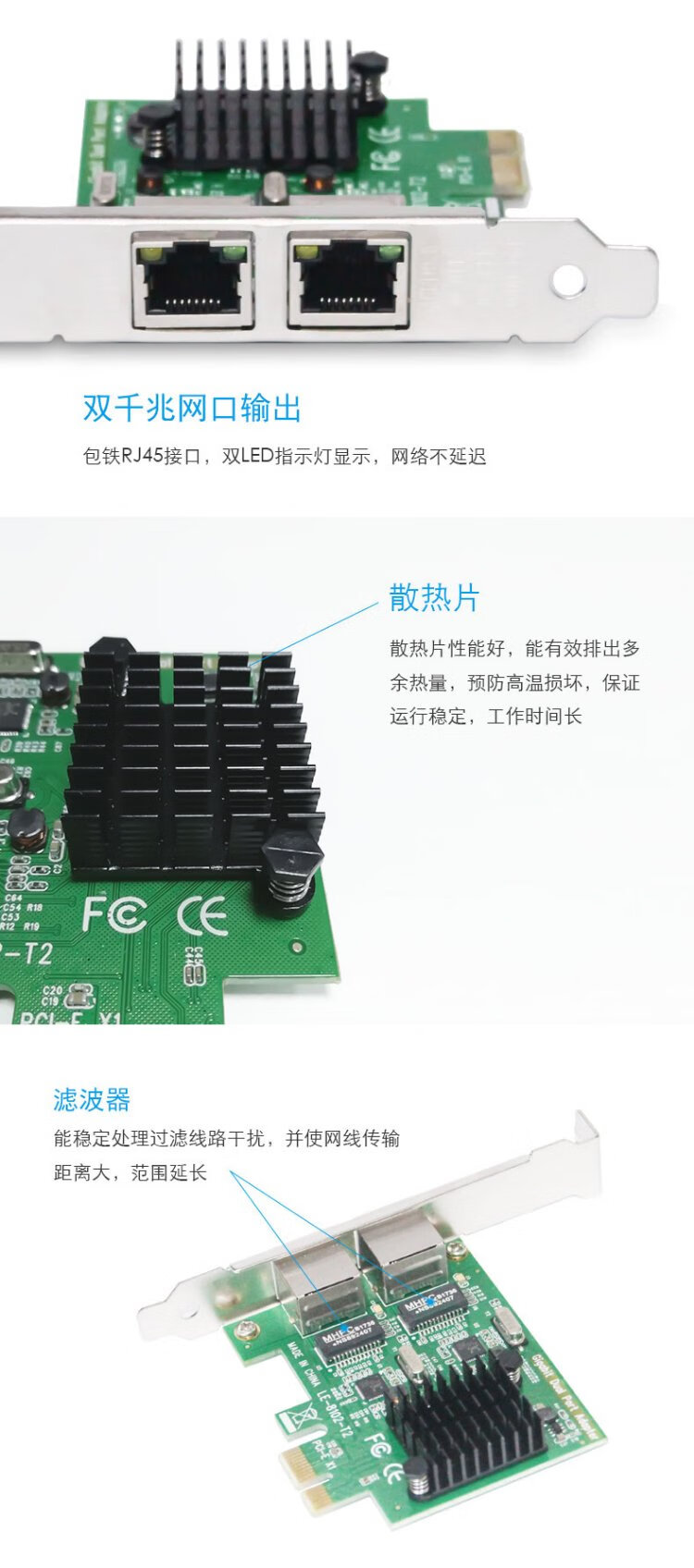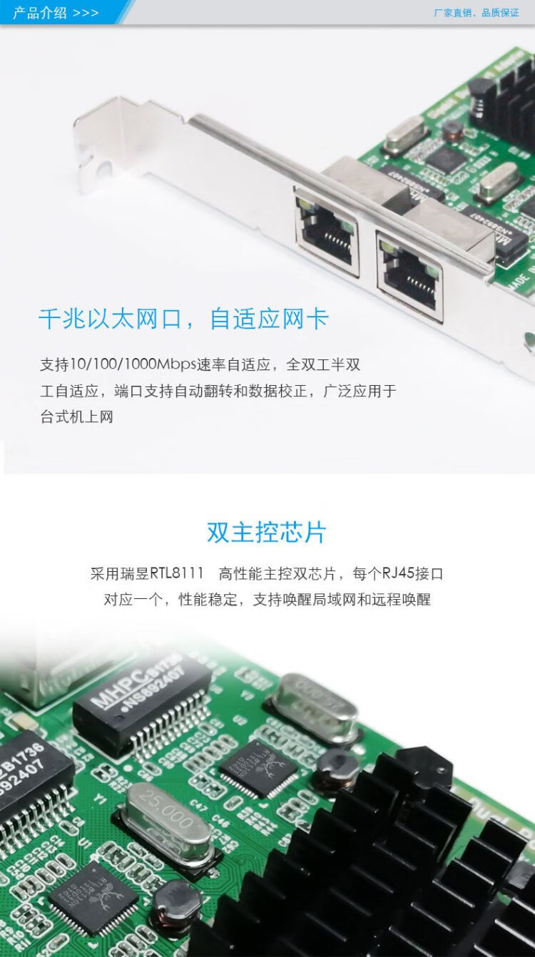 MOGE MC2249 desktop Gigabit network card dual-port PCIE Gigabit network card adaptive network card built-in wired network card