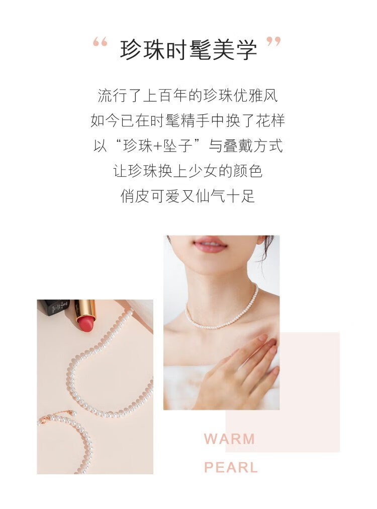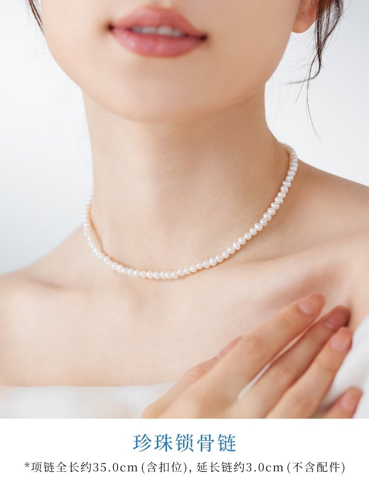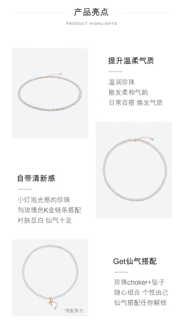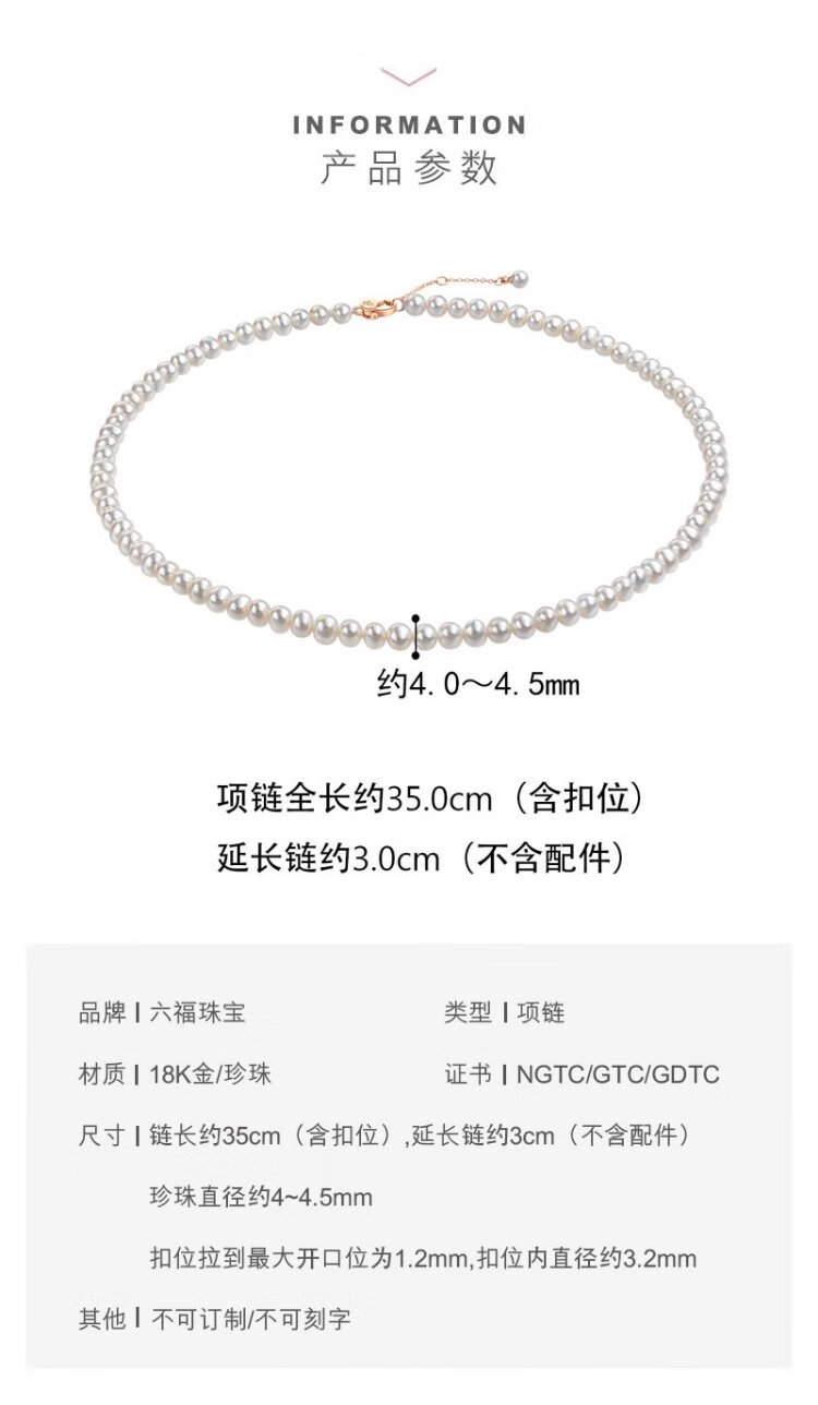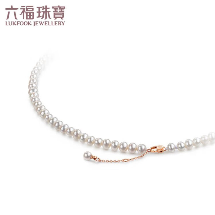 Lukfook Jewelry freshwater pearl necklace mipearl series 18K gold buckle clavicle chain, total weight approximately 8.94 grams - rose gold