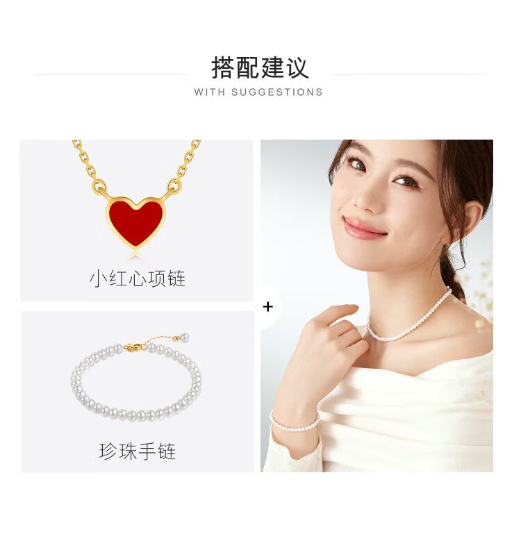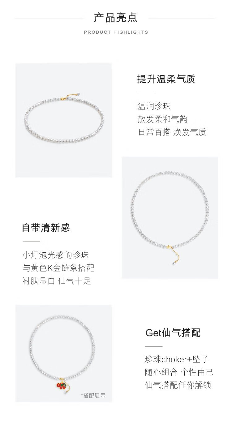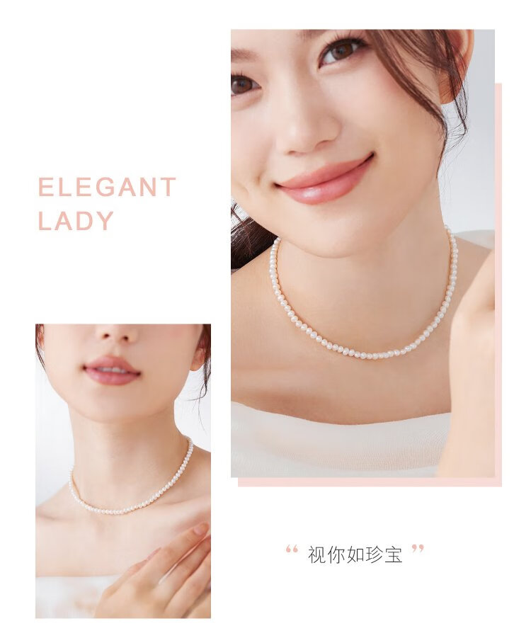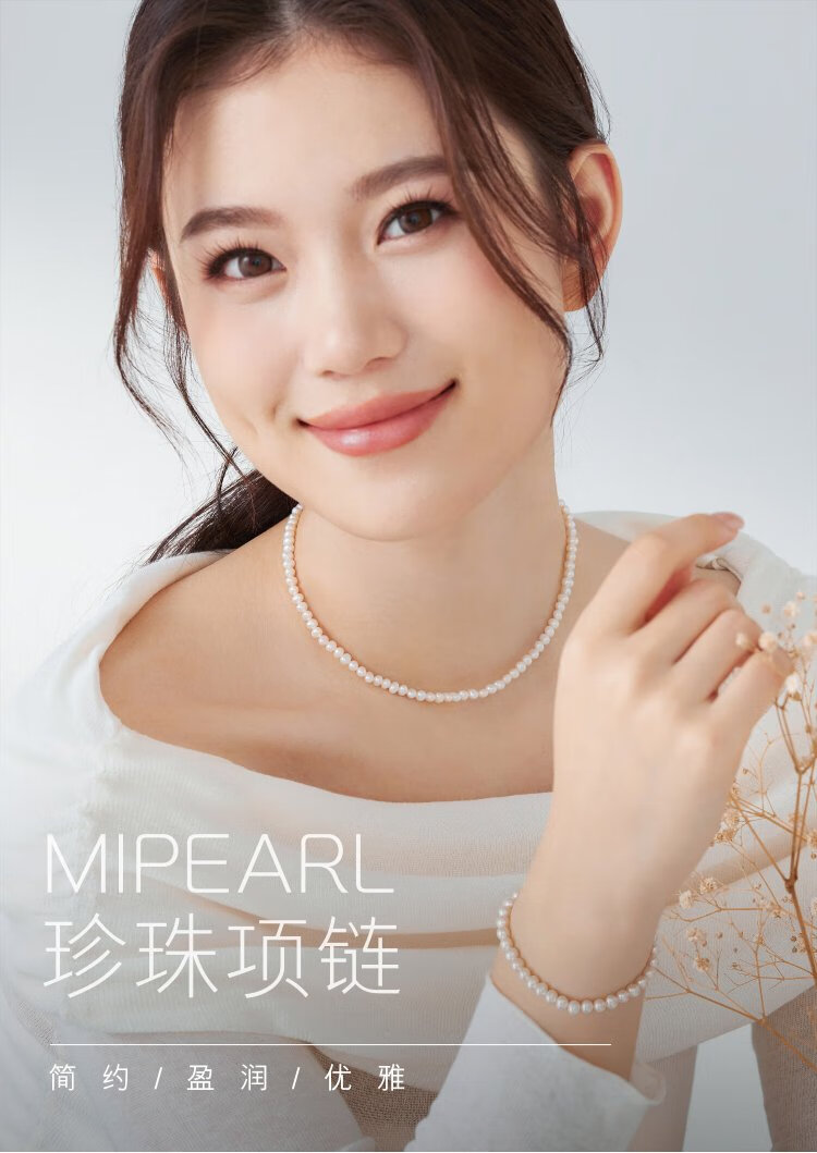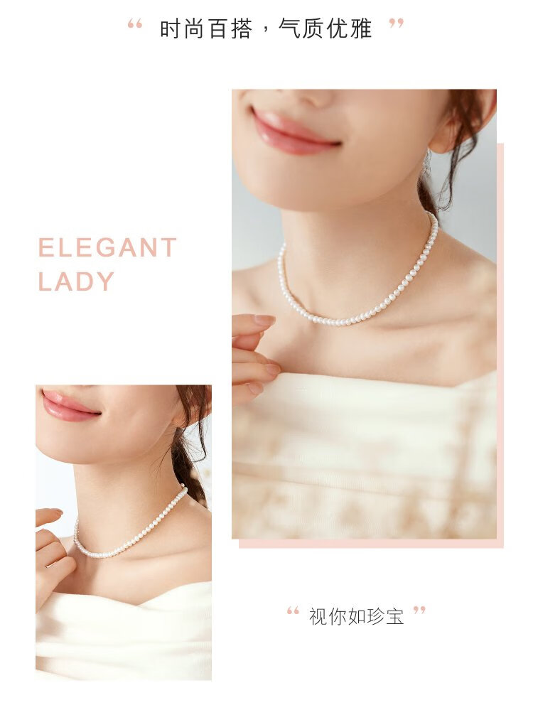 Lukfook Jewelry freshwater pearl necklace mipearl series 18K gold buckle clavicle chain, total weight approximately 8.94 grams - rose gold