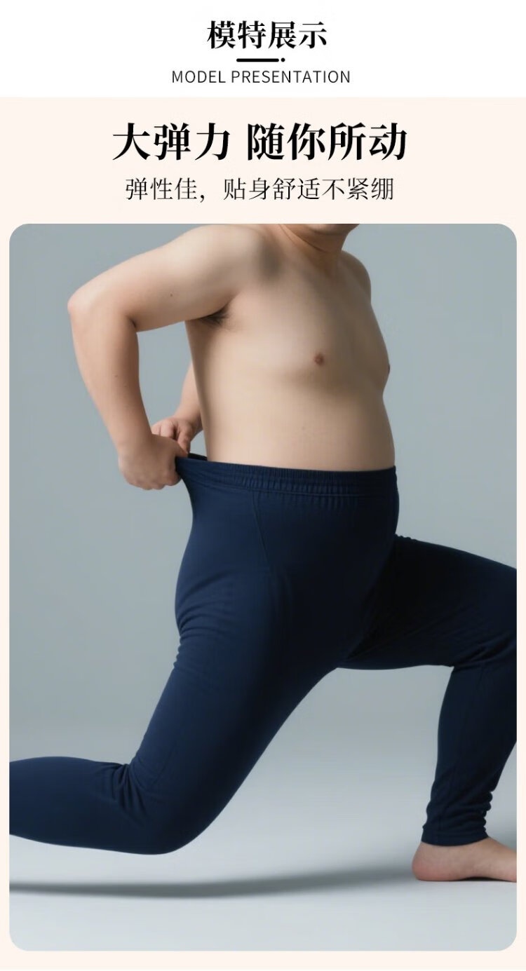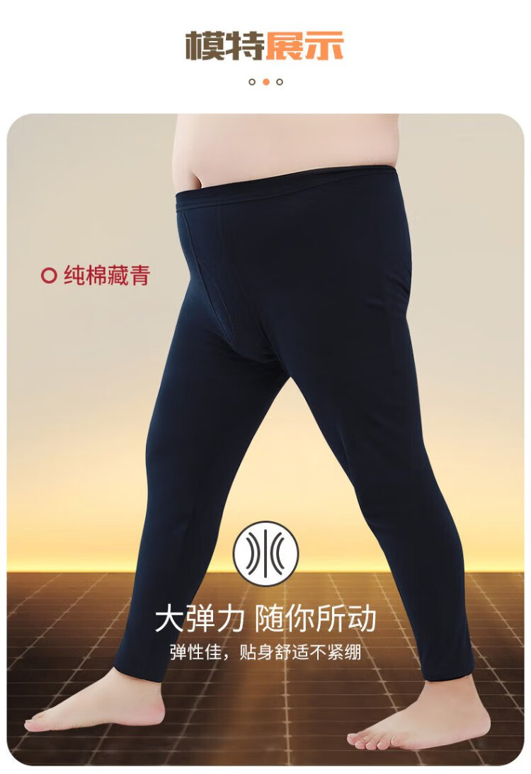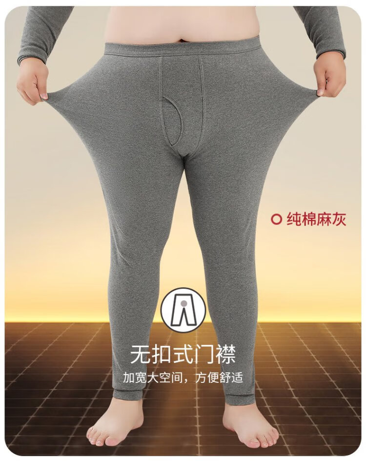 Hengyuanxiang men's large size autumn trousers 100% pure cotton thin plus fat enlarged antibacterial warm pants bottoming cotton wool underpants autumn and winter