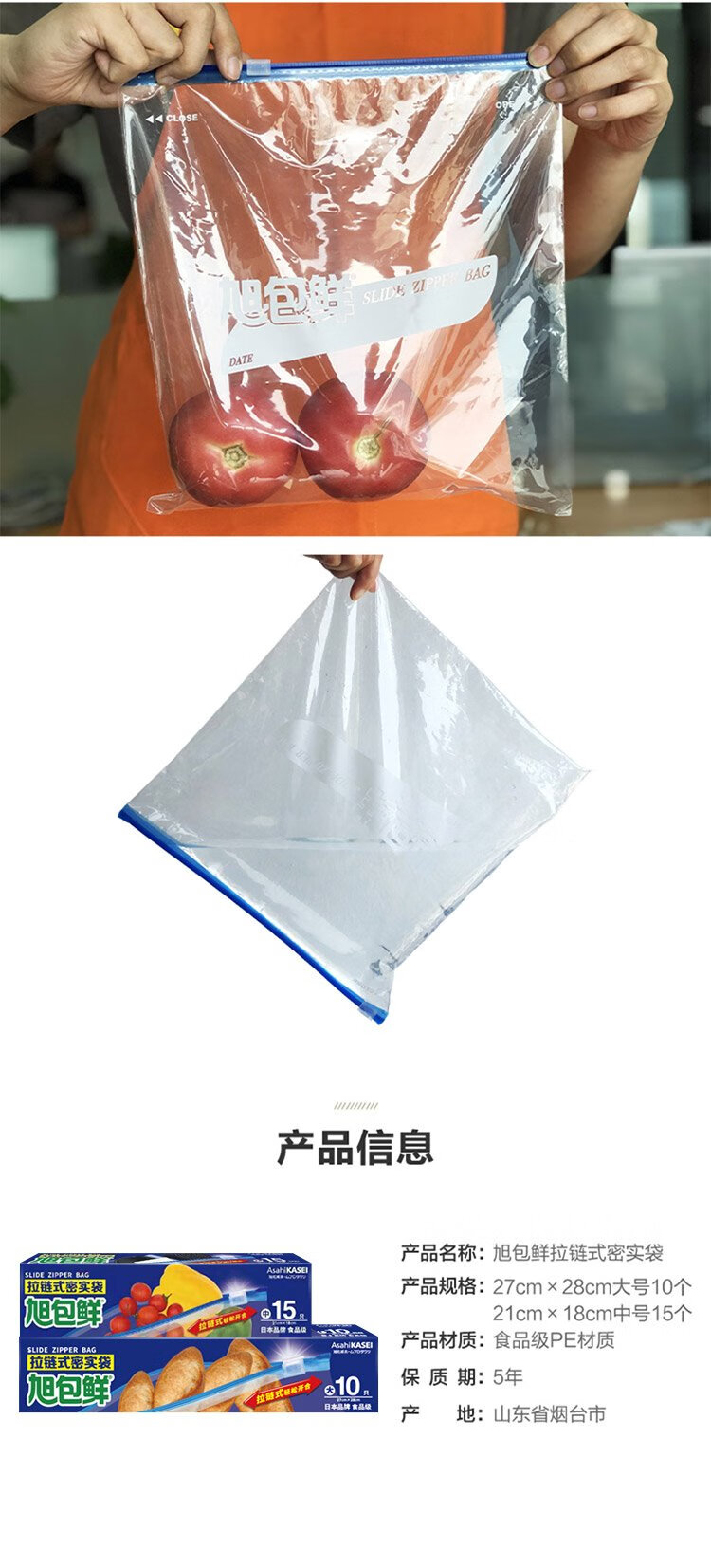 Asahi Baoxian Japanese brand zipper food tight bag sealing bag ziplock bag combination (medium + large size) 25 pieces in total
