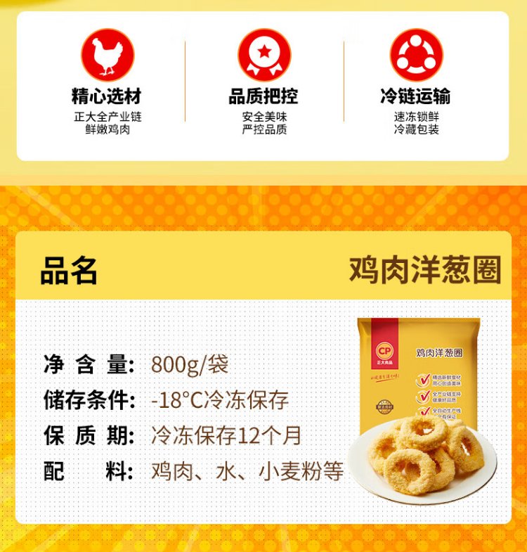CP Chia Tai Food Chicken Onion Rings 1.6Jin Jin equal to 0.5kg Frozen Breaded Semi-finished Chicken Fried Chicken Air Fryer