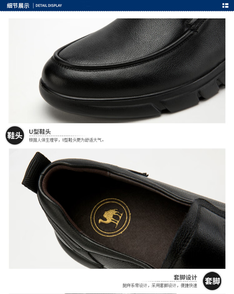 Camel leather shoes men's business casual shoes soft sole soft leather dad lazy shoes W932263660 black 41