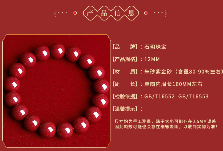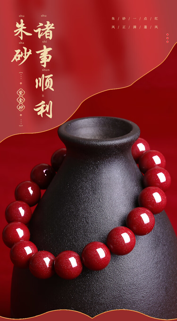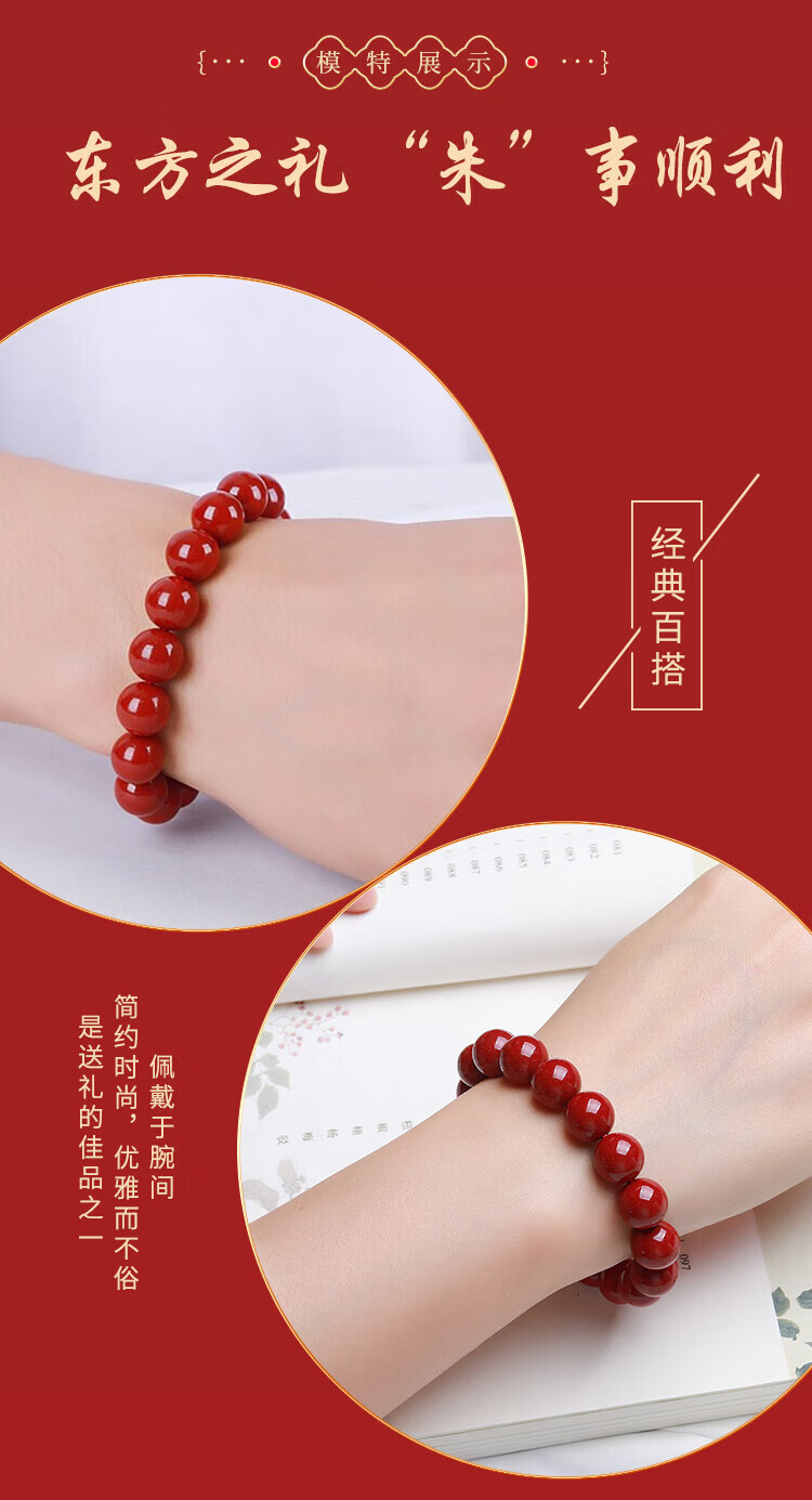 Shi Yue Jewelry High Content Purple Gold Cinnabar Bracelet Zodiac Year Snake Year Amulet Transport Bead Bracelet Men and Women Gift 12mm