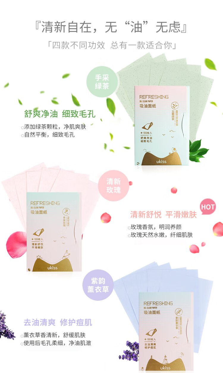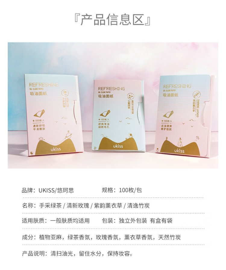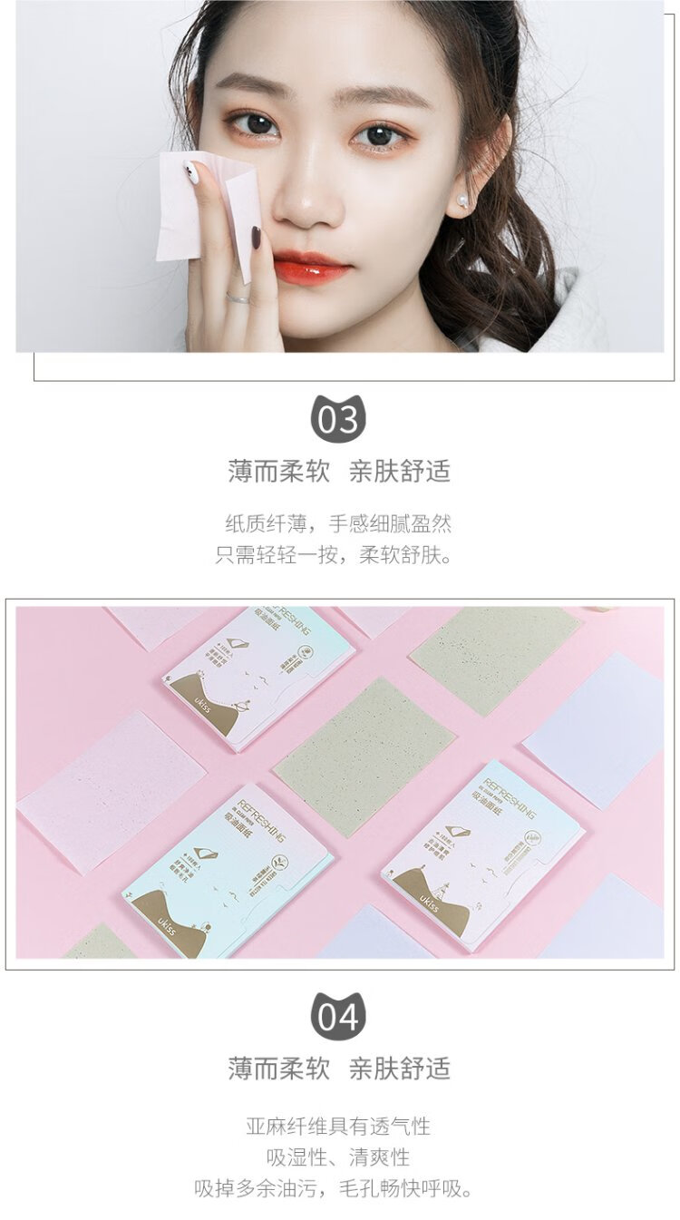 Ukiss (ukiss) green tea oil-absorbing paper 100 pieces * 3 pack facial refreshing oil control cleansing men and women portable makeup setting tissue