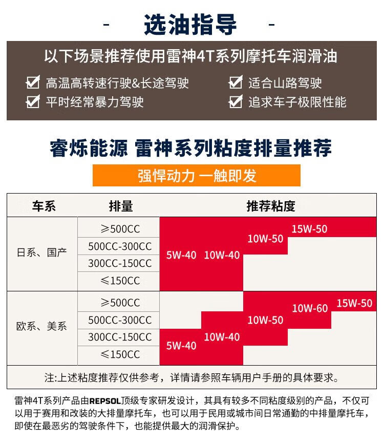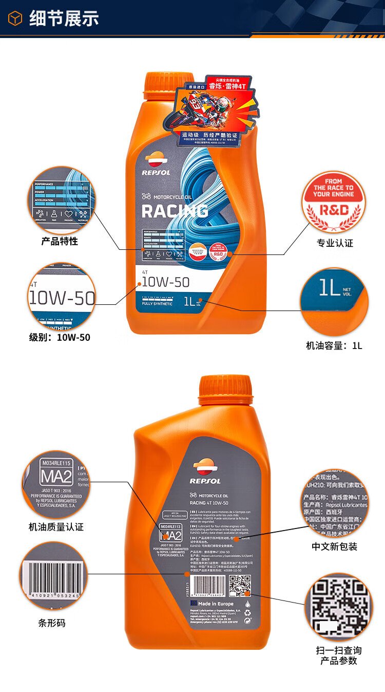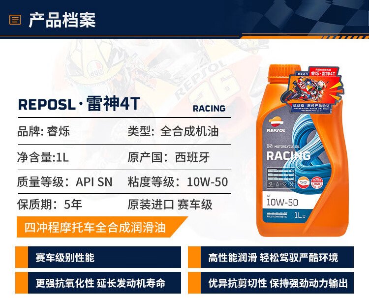 REPSOL Ruishuo Weishuang Thor Motor Oil Track Grade Fully Synthetic Motorcycle Oil Lubricant SN 10W-50 1L