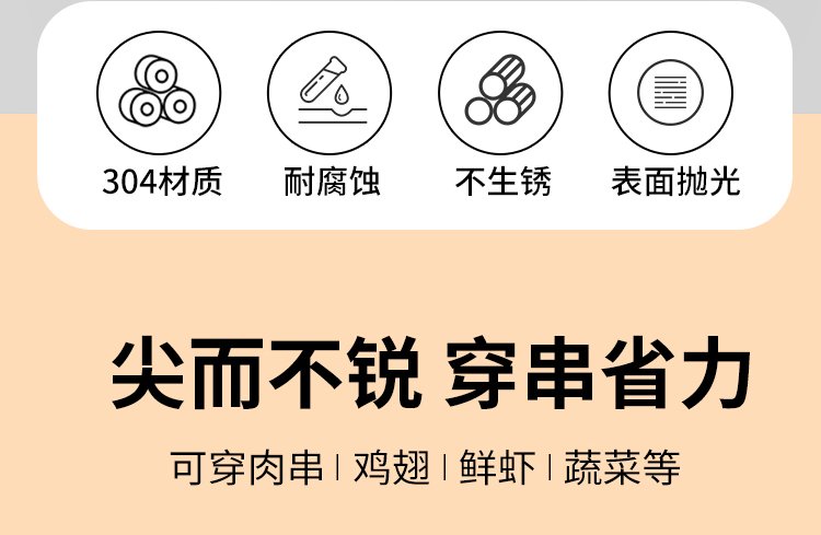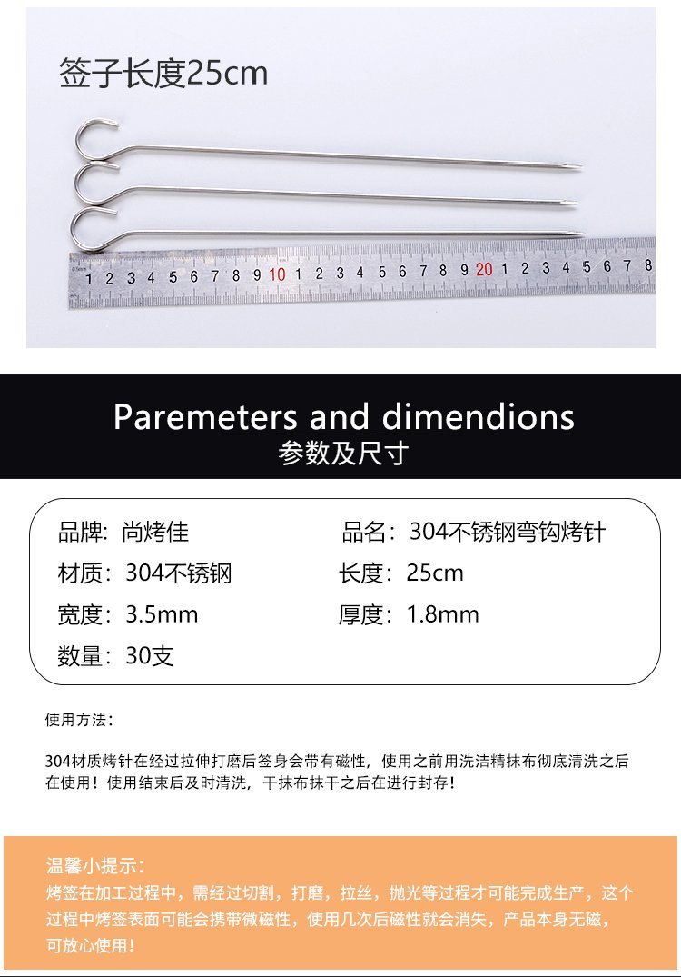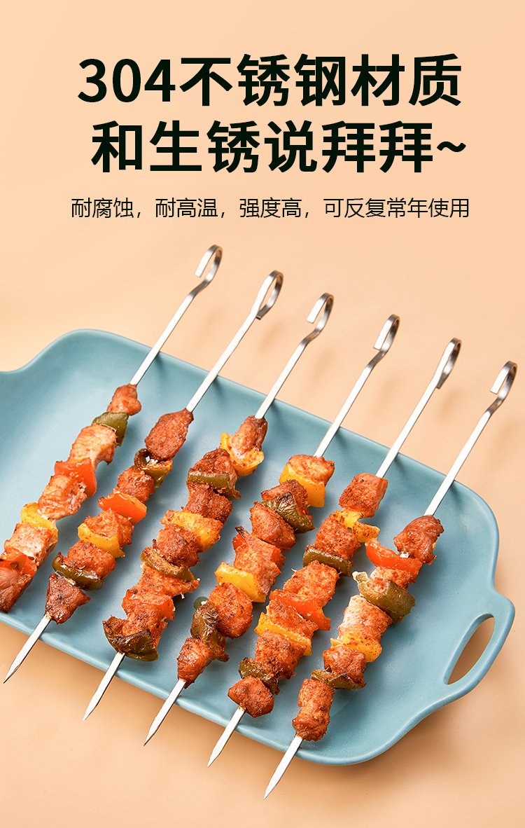 Suncojia 304 stainless steel barbecue skewers, barbecue skewers for oven, barbecue needle, mutton skewers, 30 pieces