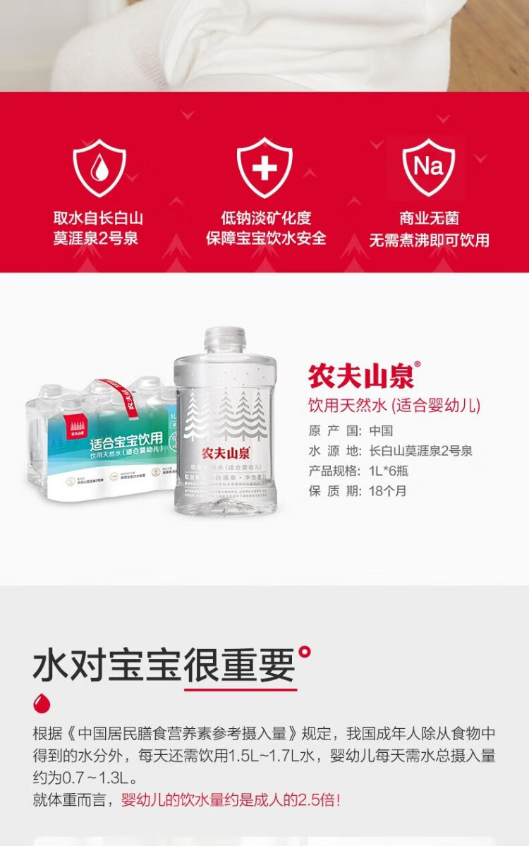 Nongfu Spring drinking natural water (suitable for infants and young children) low sodium 1L*6 bottles in plastic film