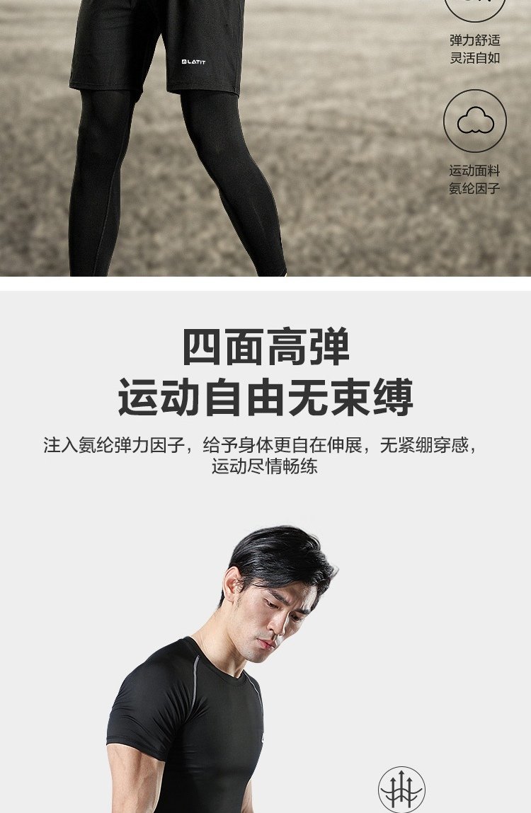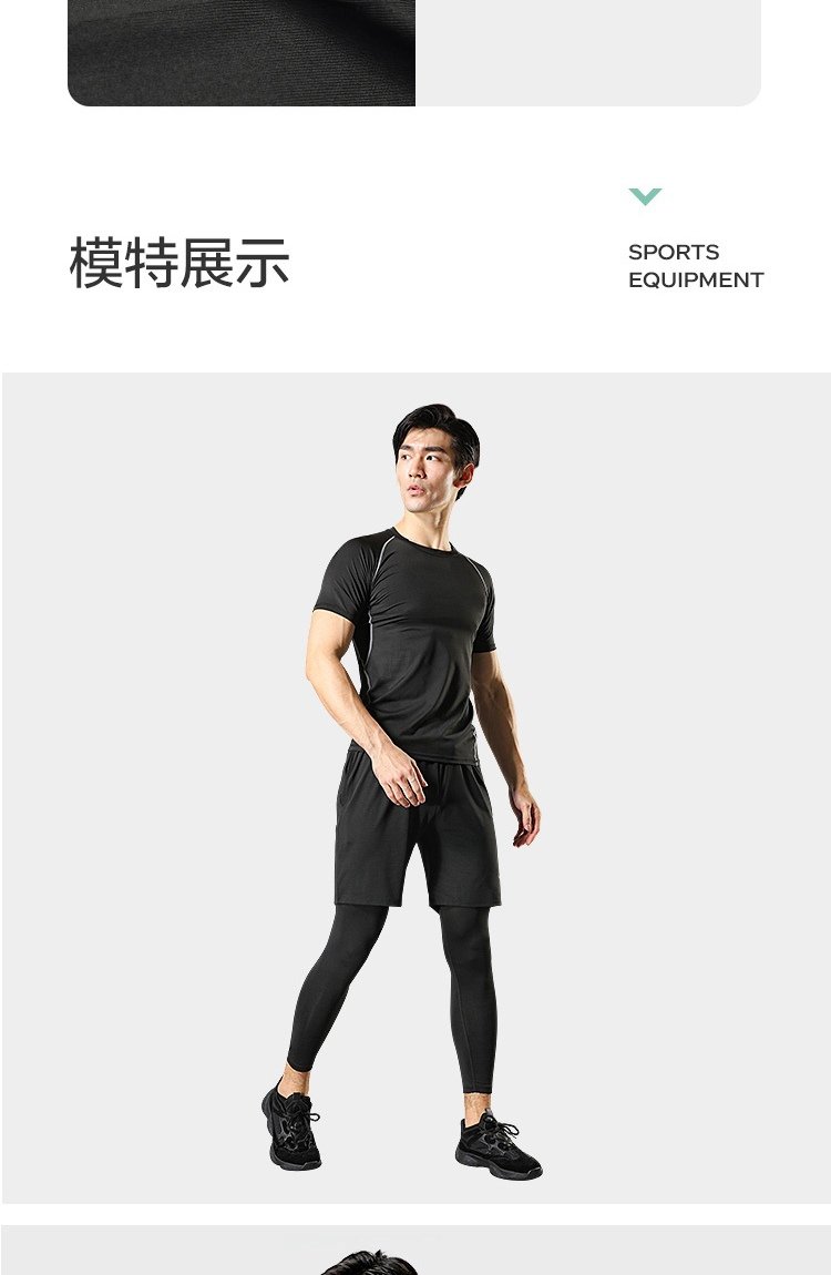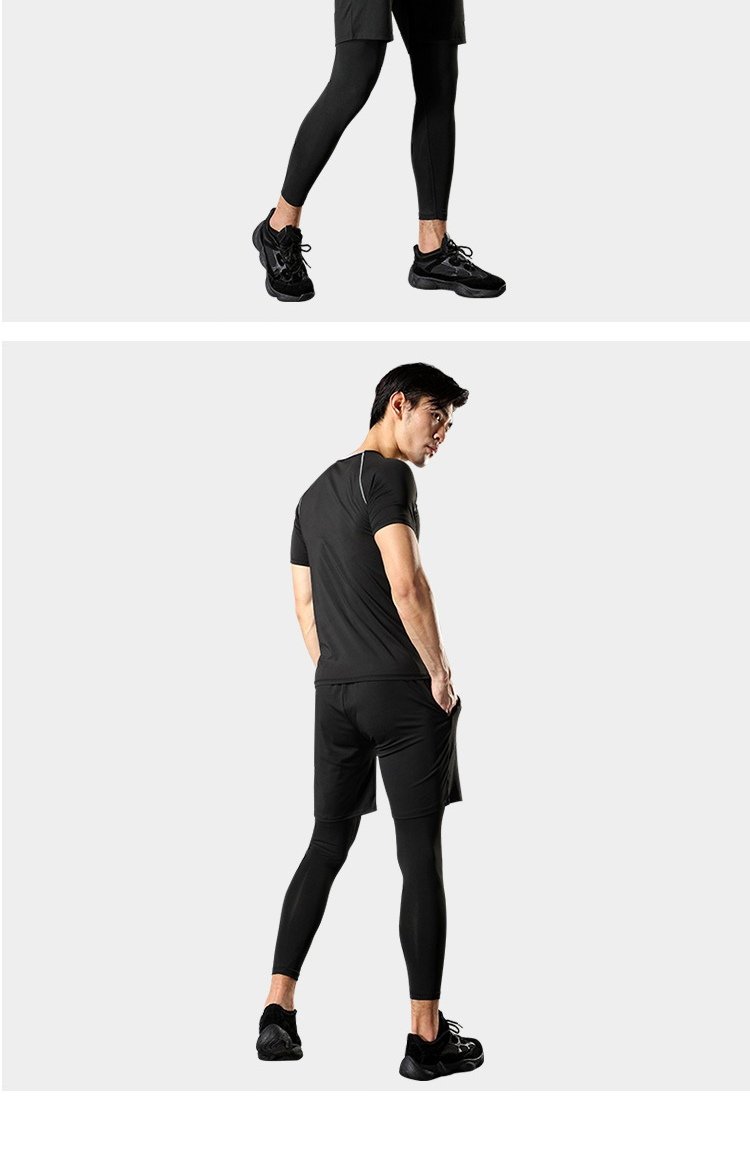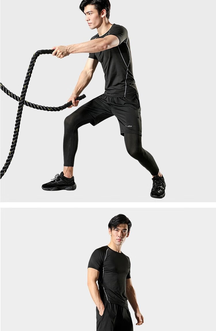 LATIT Jingdong's own brand sports suit men's summer fitness running tights shorts compression trousers basketball uniform T-shirt NZ9001-black stitching-short-sleeved four-piece set-XL