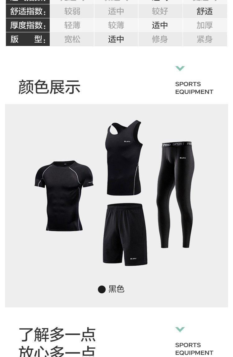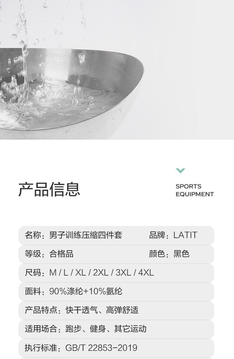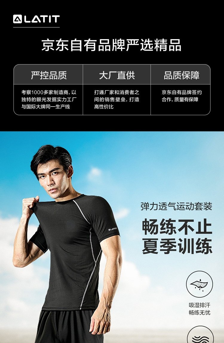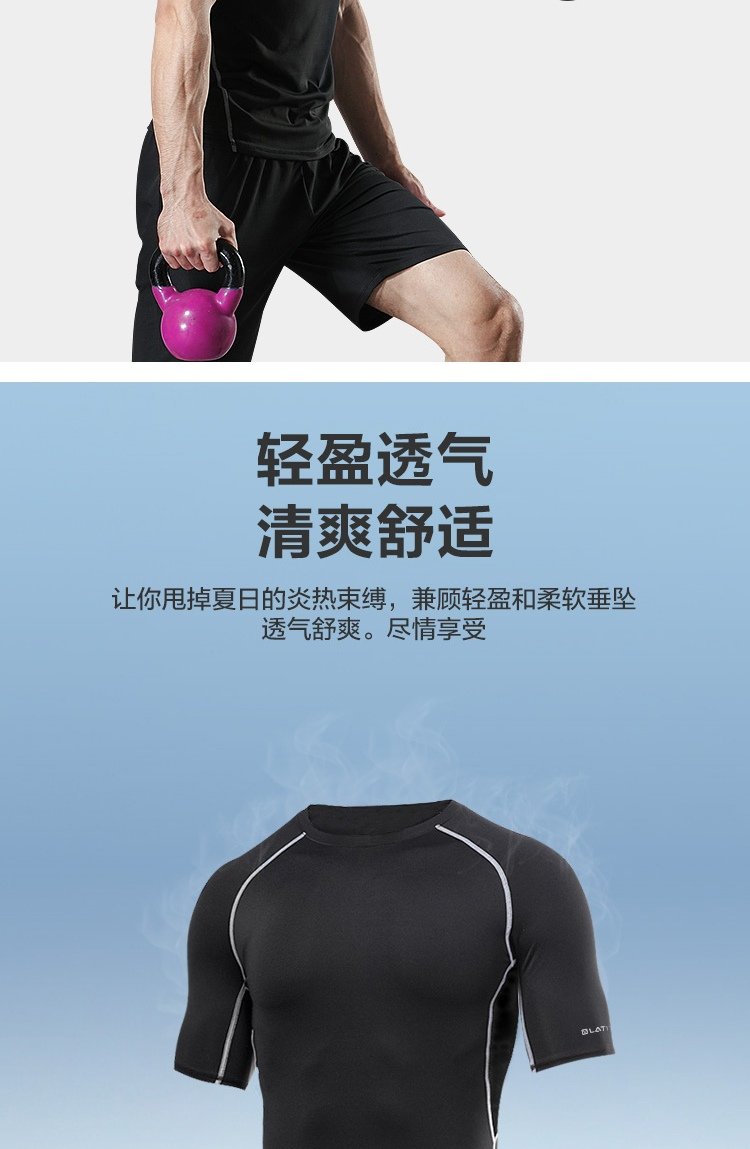 LATIT Jingdong's own brand sports suit men's summer fitness running tights shorts compression trousers basketball uniform T-shirt NZ9001-black stitching-short-sleeved four-piece set-XL