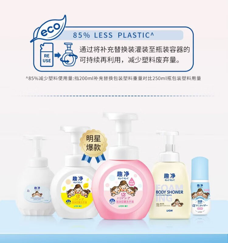 Lion Qujing Foam Antibacterial Hand Sanitizer Pure Toning Fragrance 200ml*3 Thick Foam Children's Family Imported Plant Extract