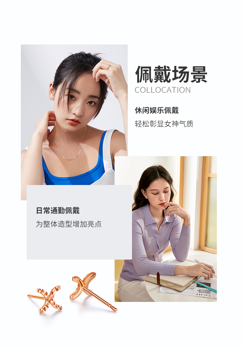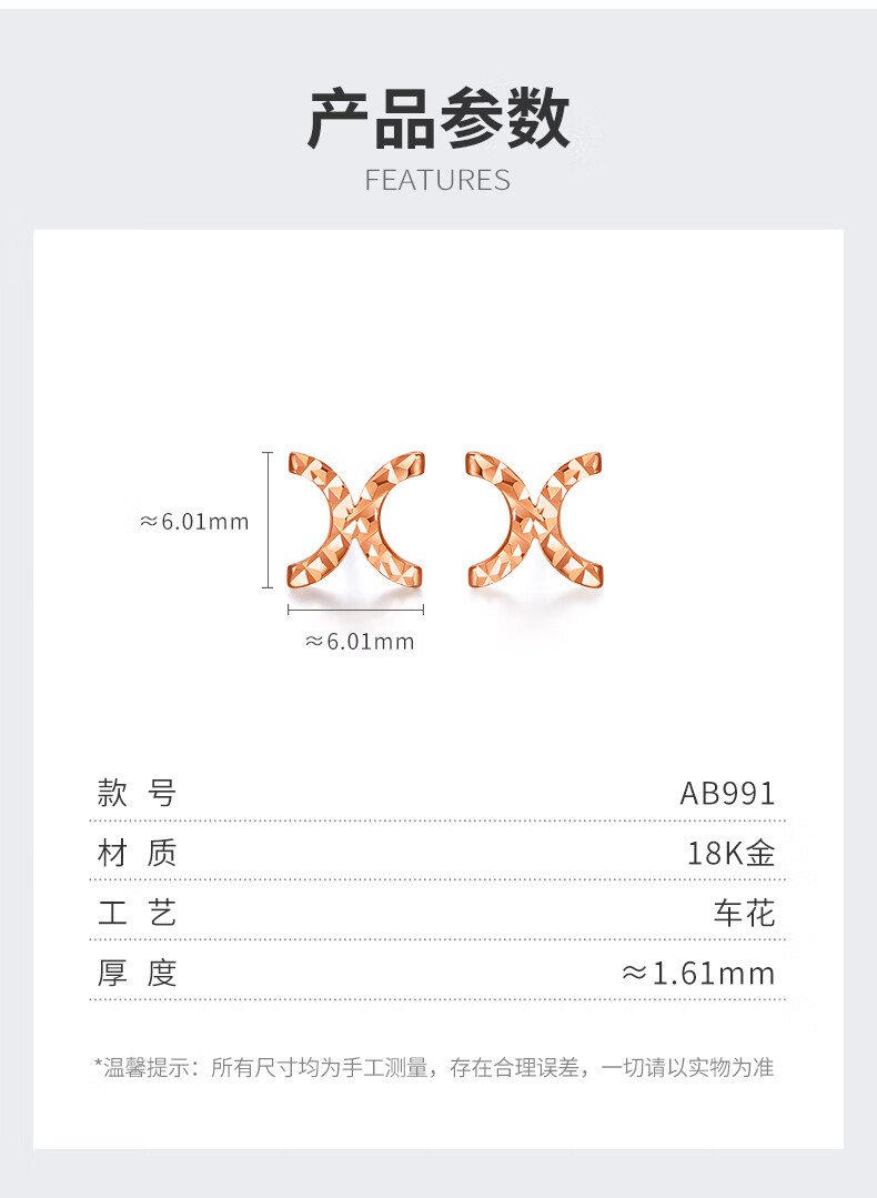 Xie Ruilin (TSL) 18K gold earrings for women, simple color gold earrings and earrings for girlfriend AB991