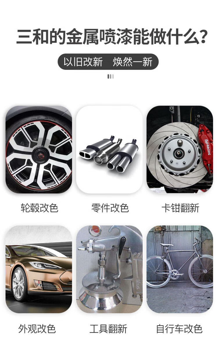 Sanhe self-spraying wheel hub color changing metal anti-rust paint wall graffiti railing furniture renovation paint #100 special silver