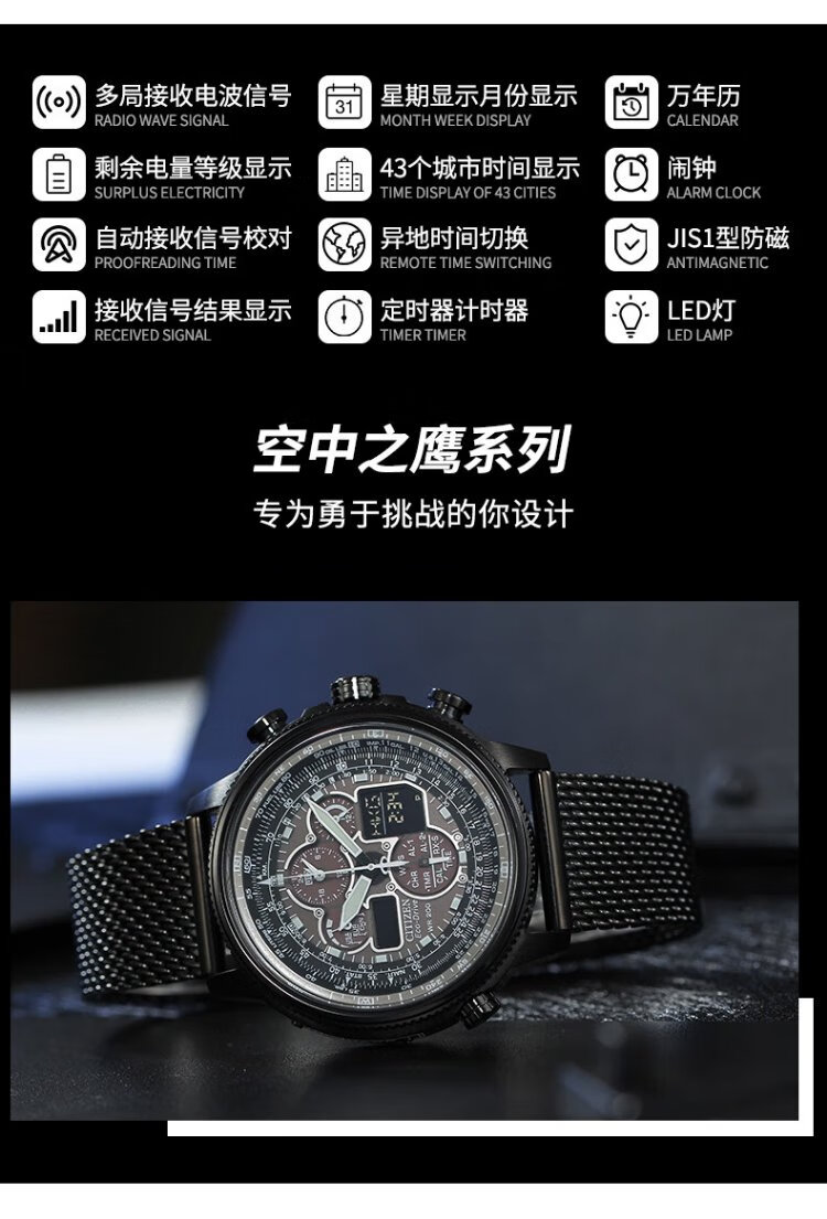 CITIZEN Air Eagle Eco-Drive Multi-station Radio Wave Perpetual Automatic Time Adjustment Sports Waterproof Business Men's Watch JY8037-50E