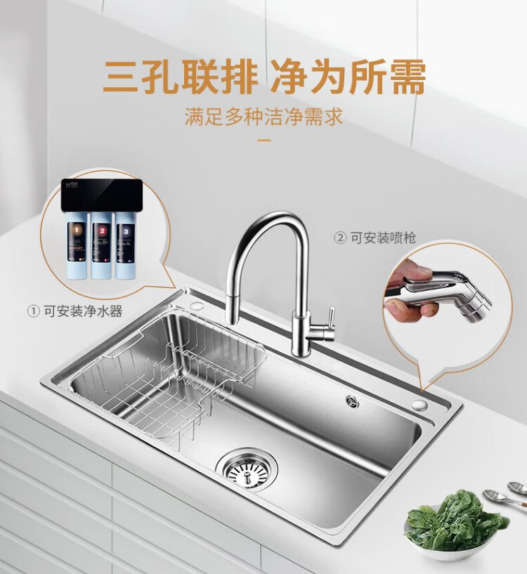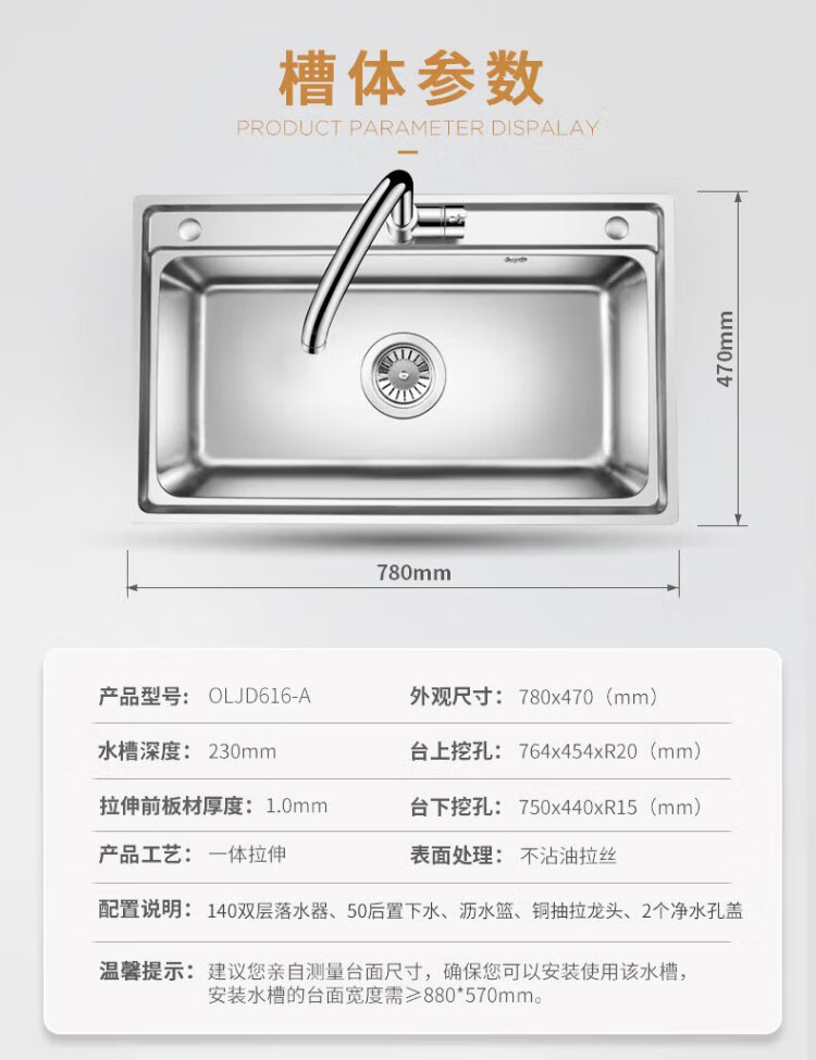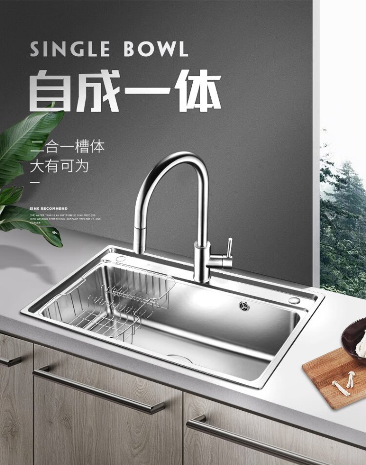 OULIN National Subsidy Kitchen Sink Large Single Slot Vegetable Basin Large Single Slot 304 Stainless Steel Sink