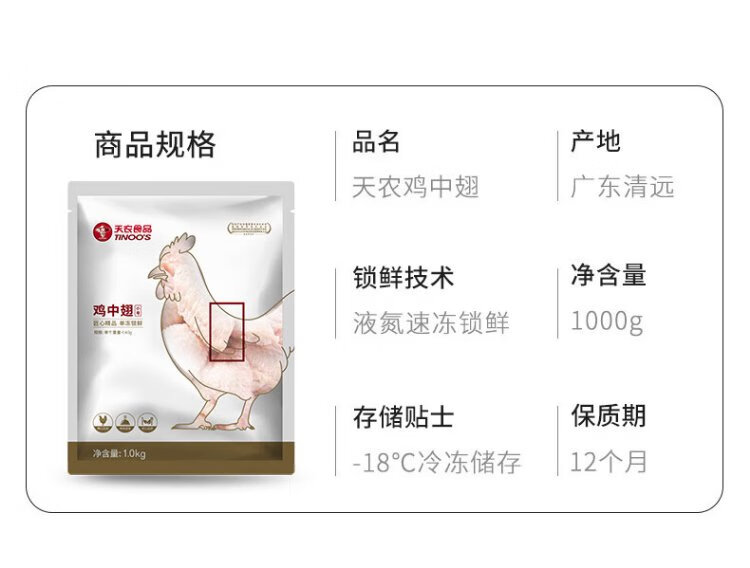 Tiannong Hong Kong Chicken Wings Net Weight 2Jin Jin is equal to 0.5kg Export Quality Qingyuan Local Chicken Wings Frozen BBQ Braised Chicken Wings Ingredients