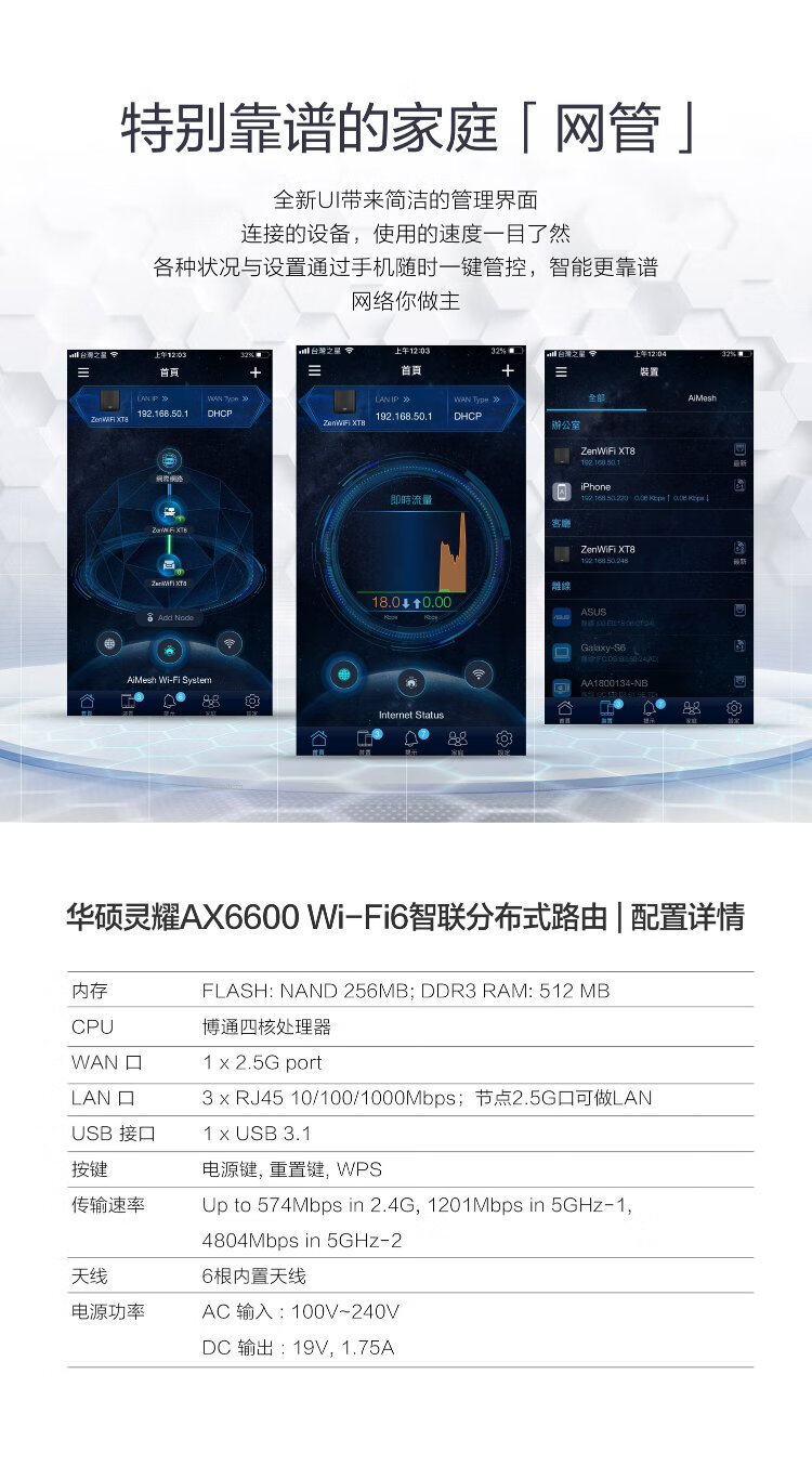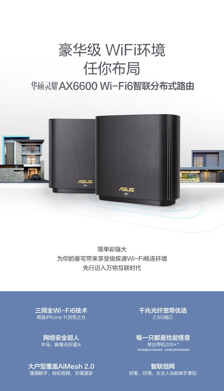 ASUS AX6600M tri-band wireless router | Lingyao distributed router | Broadcom quad-core | 2.5G port | Whole house coverage WiFi6 (black single package)