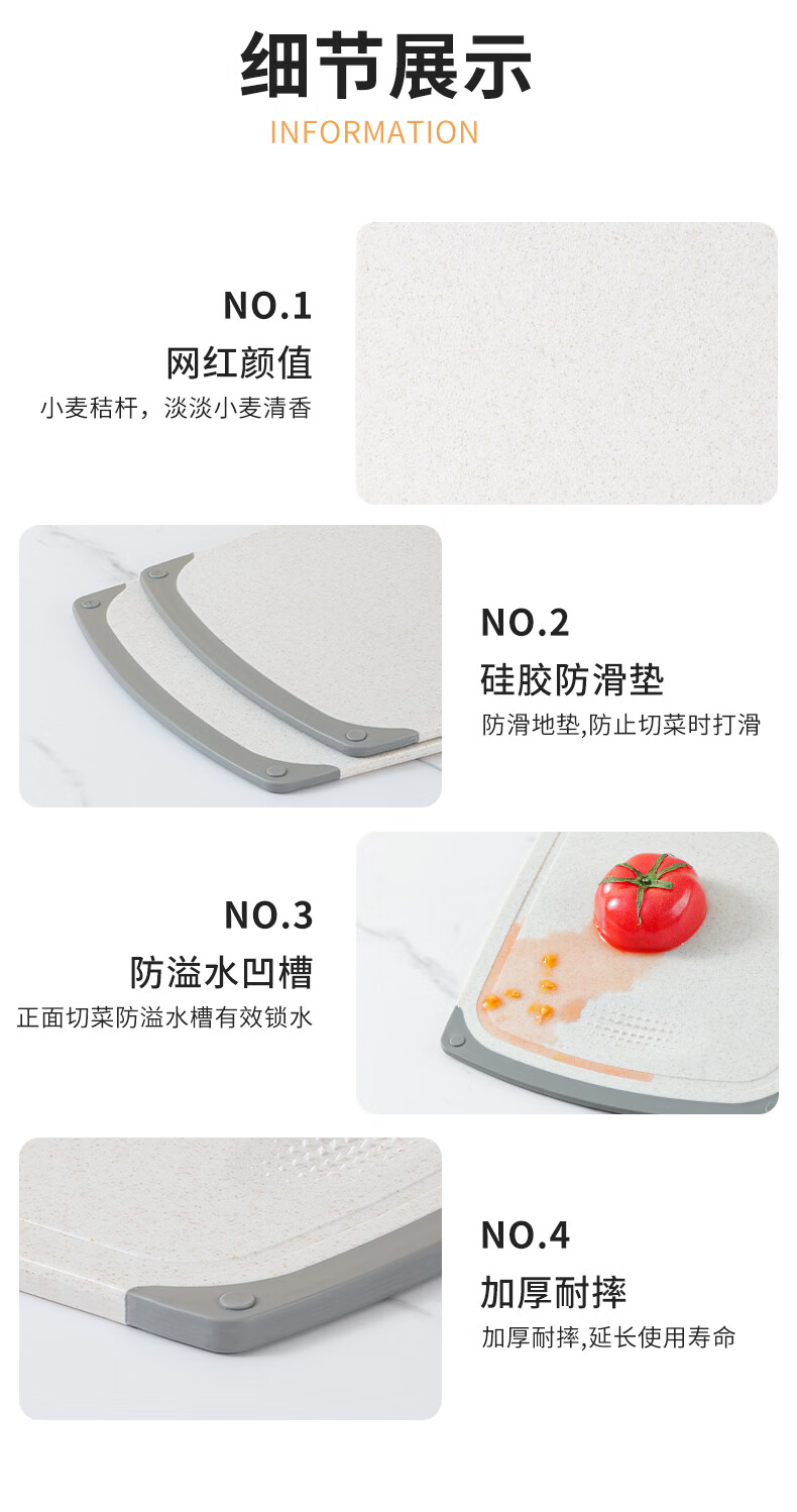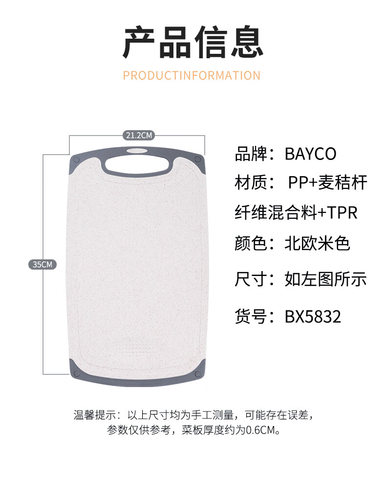 BAYCO cutting board household wheat straw multi-functional double-sided plastic cutting board chopping board and panel 35*21CM BX5832