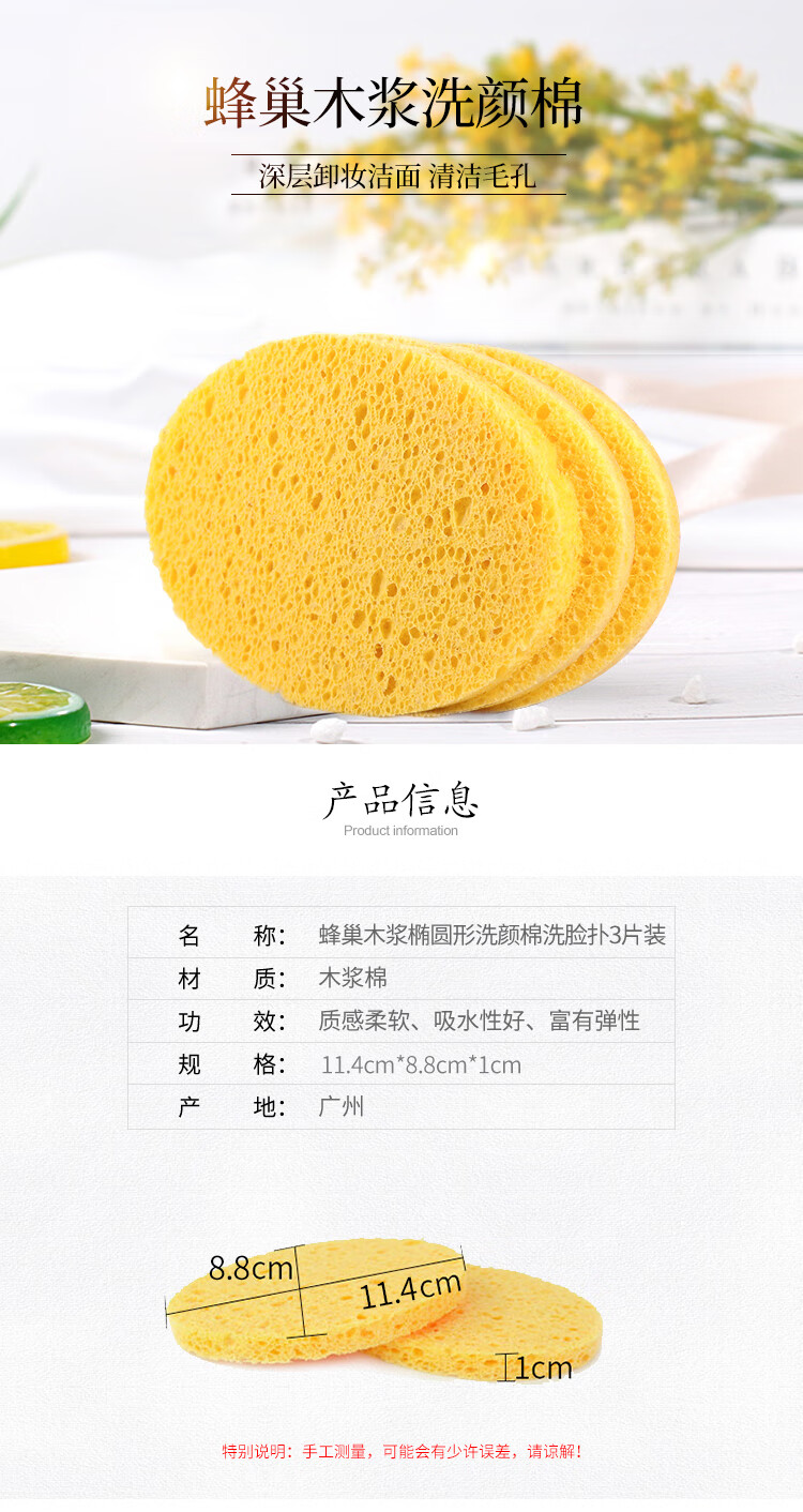 Youjia UPLUS Honeycomb Deep Cleansing Facial Washing Sponge 3 Pieces Natural Wood Pulp Facial Washing Sponge for Makeup Remover