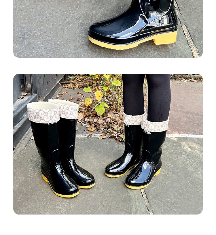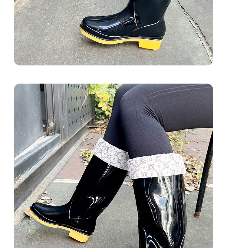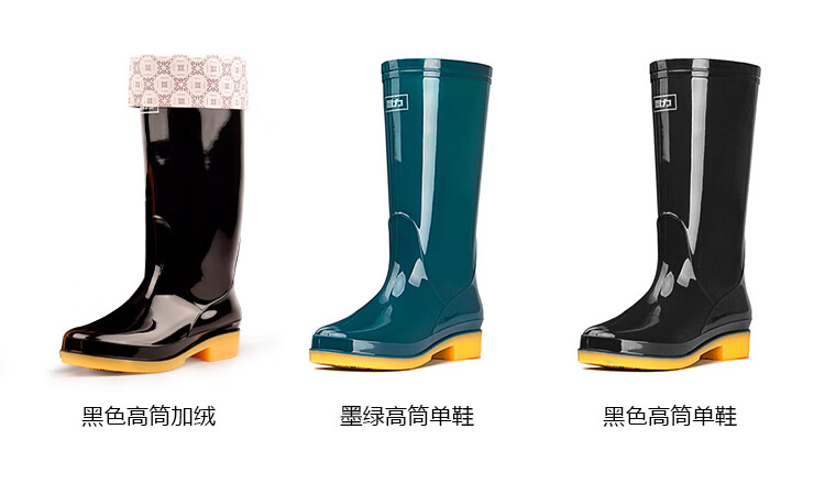 Pull-back rain boots for women, fashionable outdoor rain boots, waterproof rain boots, water shoes, wear-resistant rubber shoes 6813, dark green high tube 37