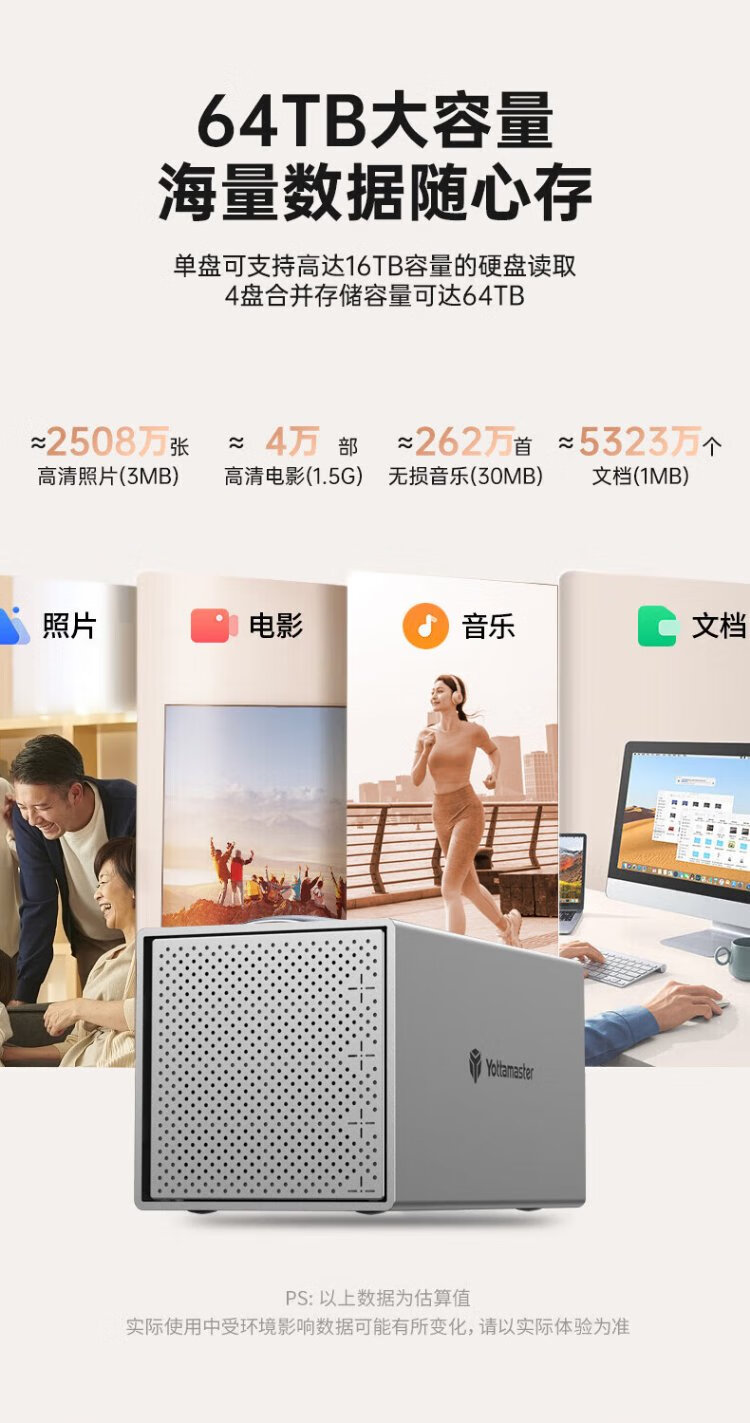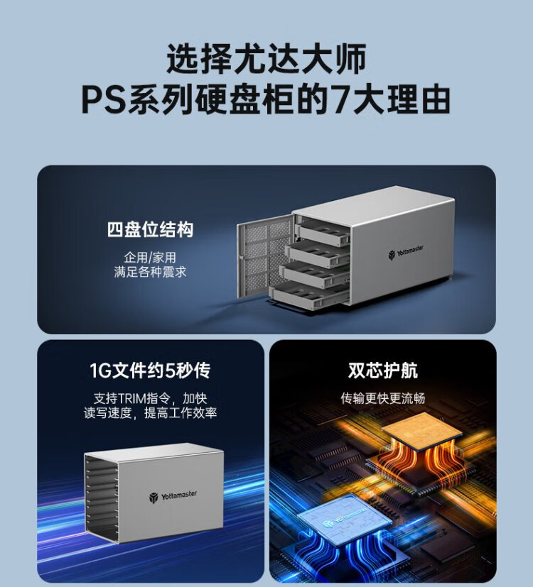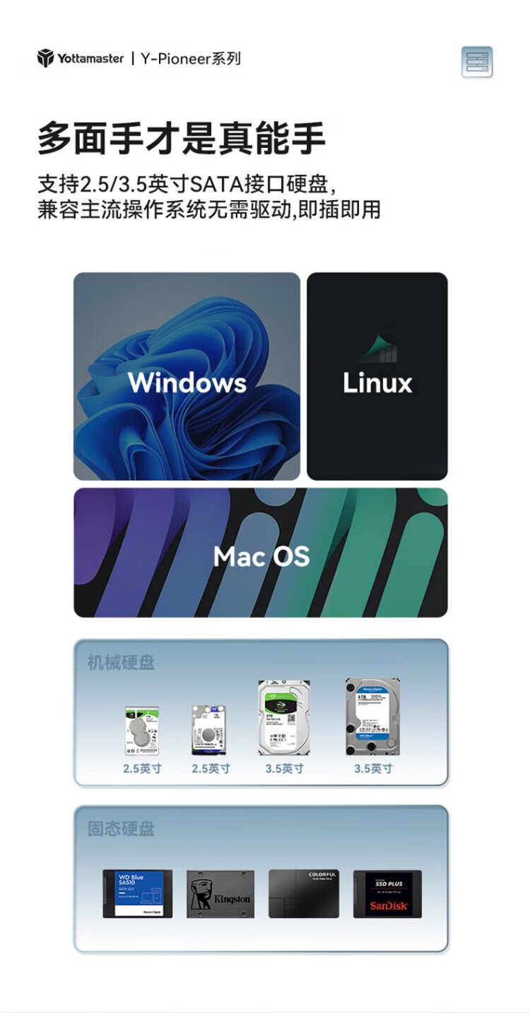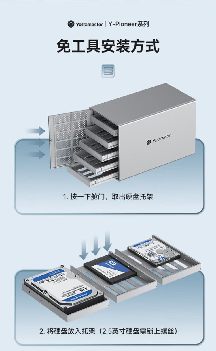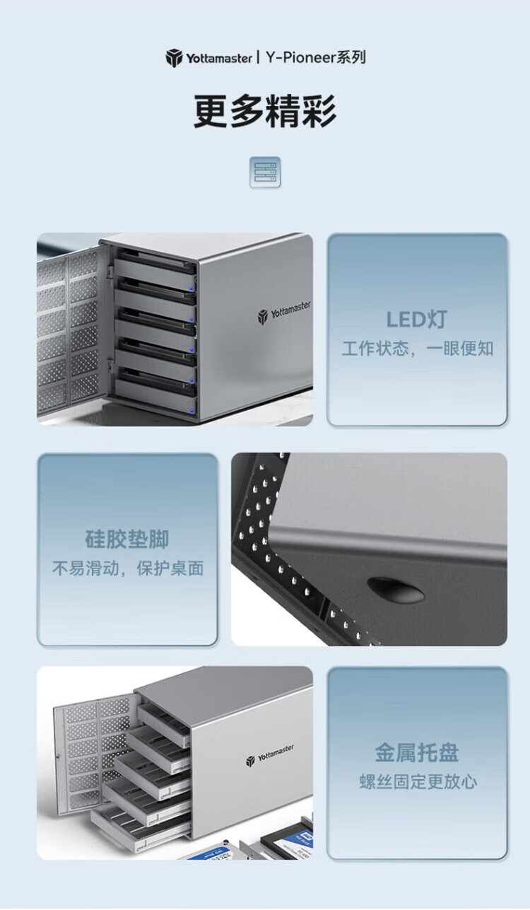 尤达大师 硬盘柜硬盘盒 多盘位硬盘笼(不带RAID磁盘阵列)适用NAS扩展存储2.5/3.5英寸SATA机械固态硬盘