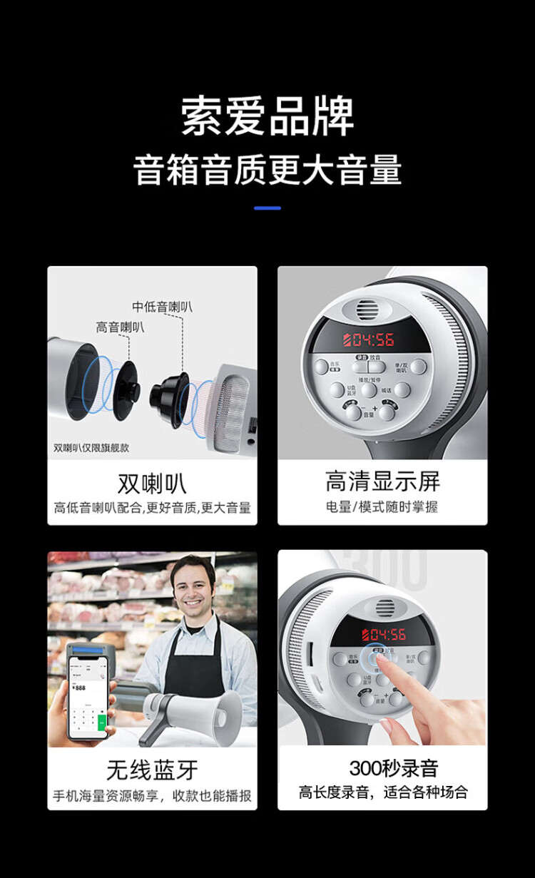 Sony Ericsson (soaiy) S800 recording loudspeaker outdoor handheld promotional rechargeable loudspeaker portable loud loudspeaker high-pitched Bluetooth U disk stall collection small microphone classic version