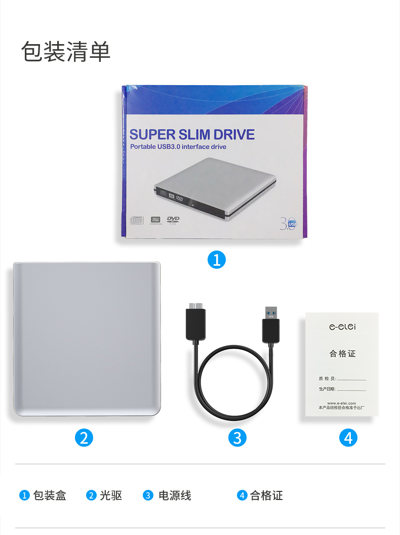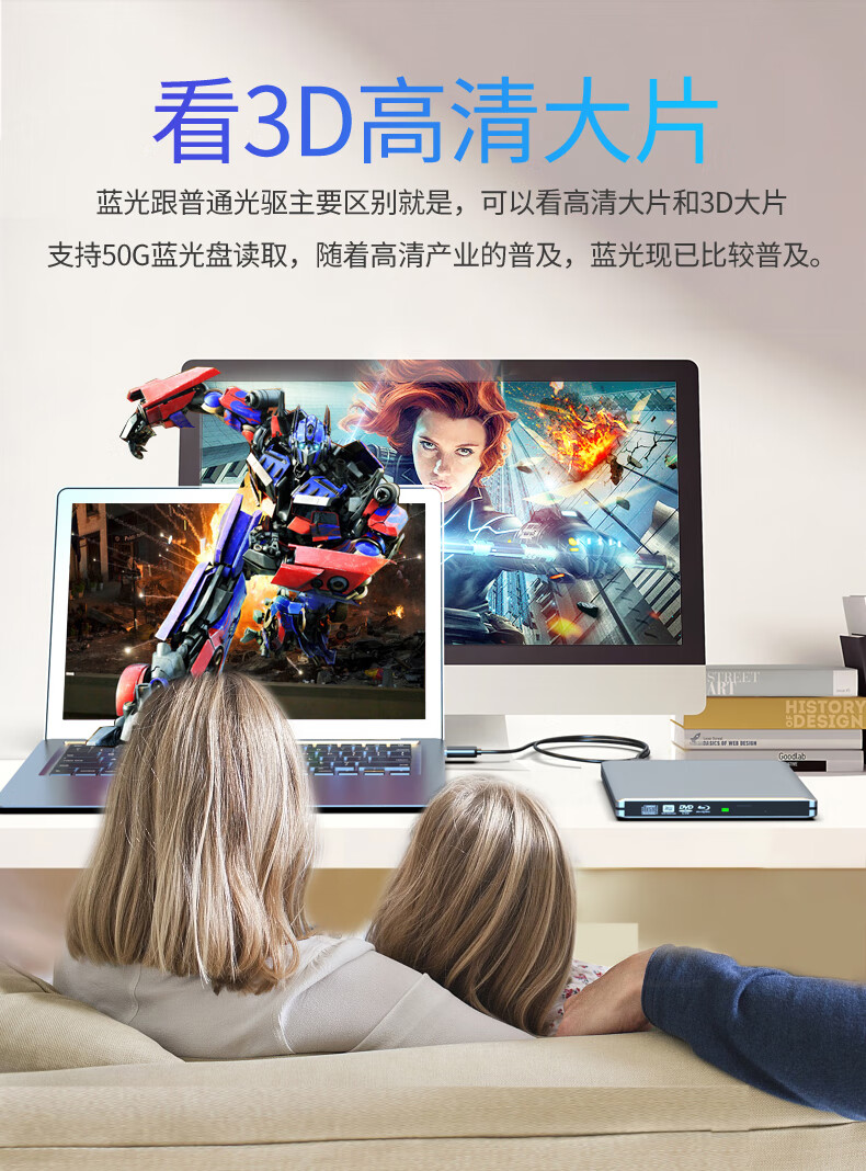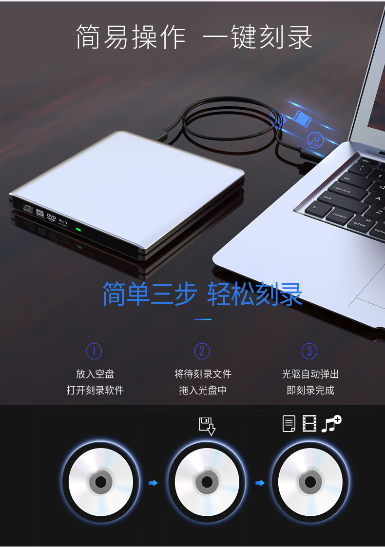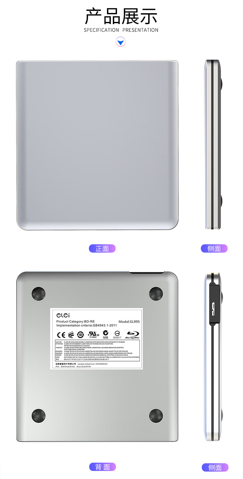 ELei USB3.0 external Blu-ray burner optical drive, high-speed external mobile DVD burner, supports 3D Blu-ray 50G100G playback bd-re external optical drive