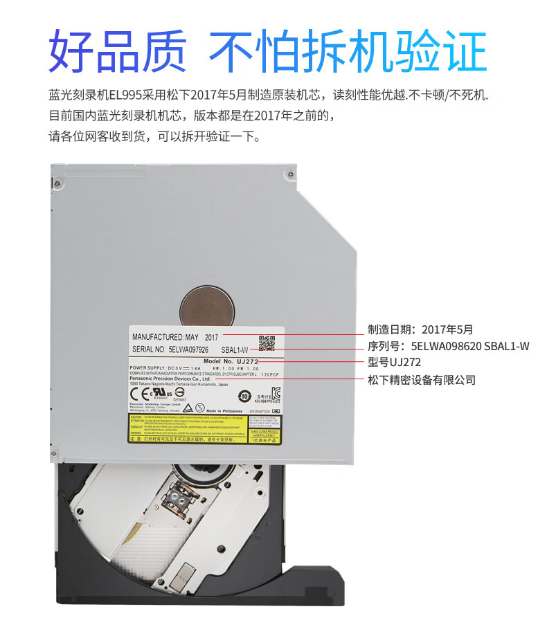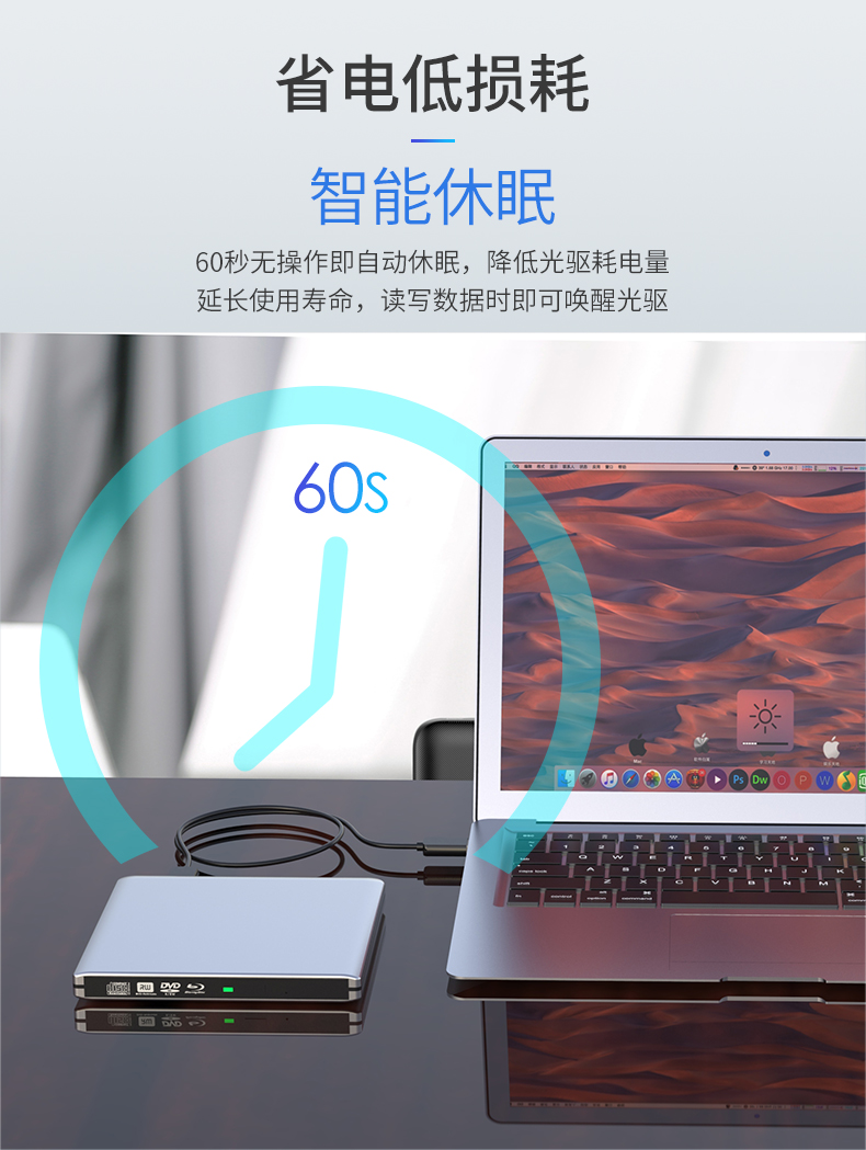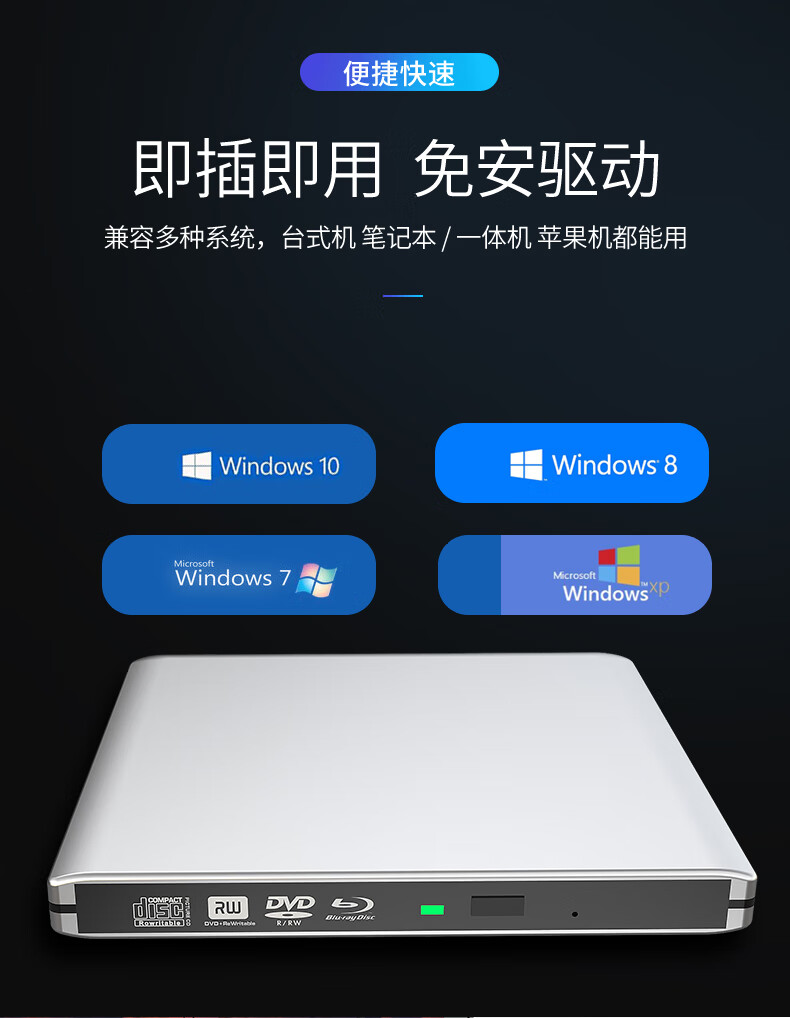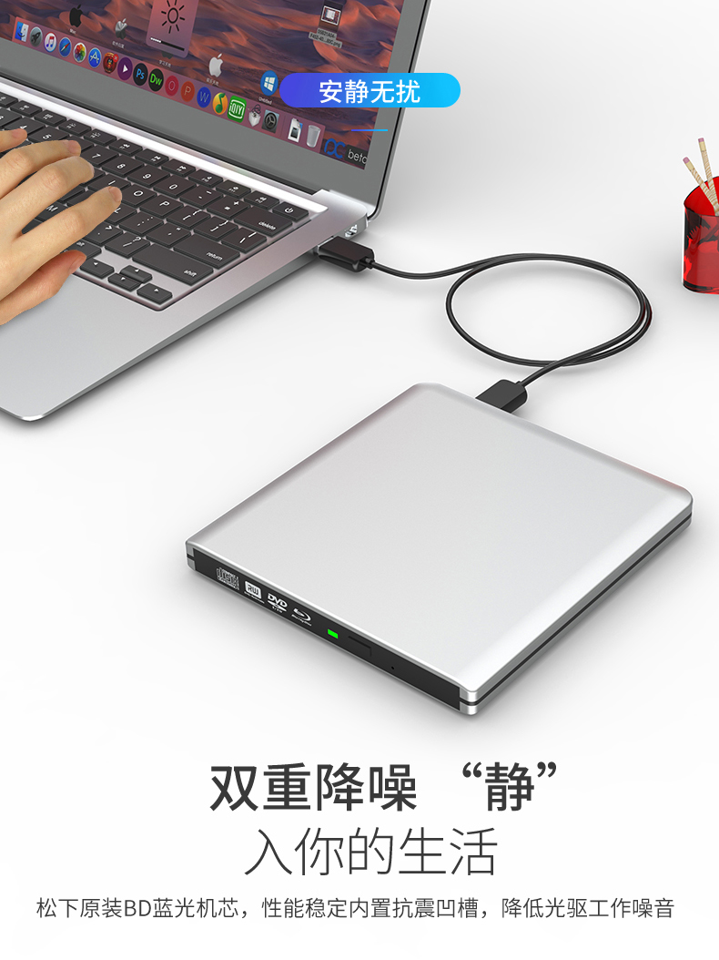 ELei USB3.0 external Blu-ray burner optical drive, high-speed external mobile DVD burner, supports 3D Blu-ray 50G100G playback bd-re external optical drive