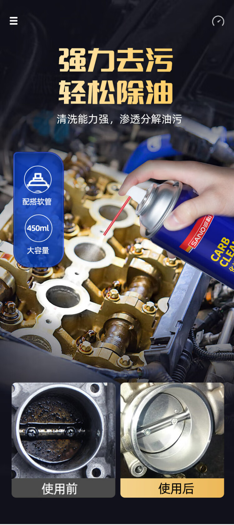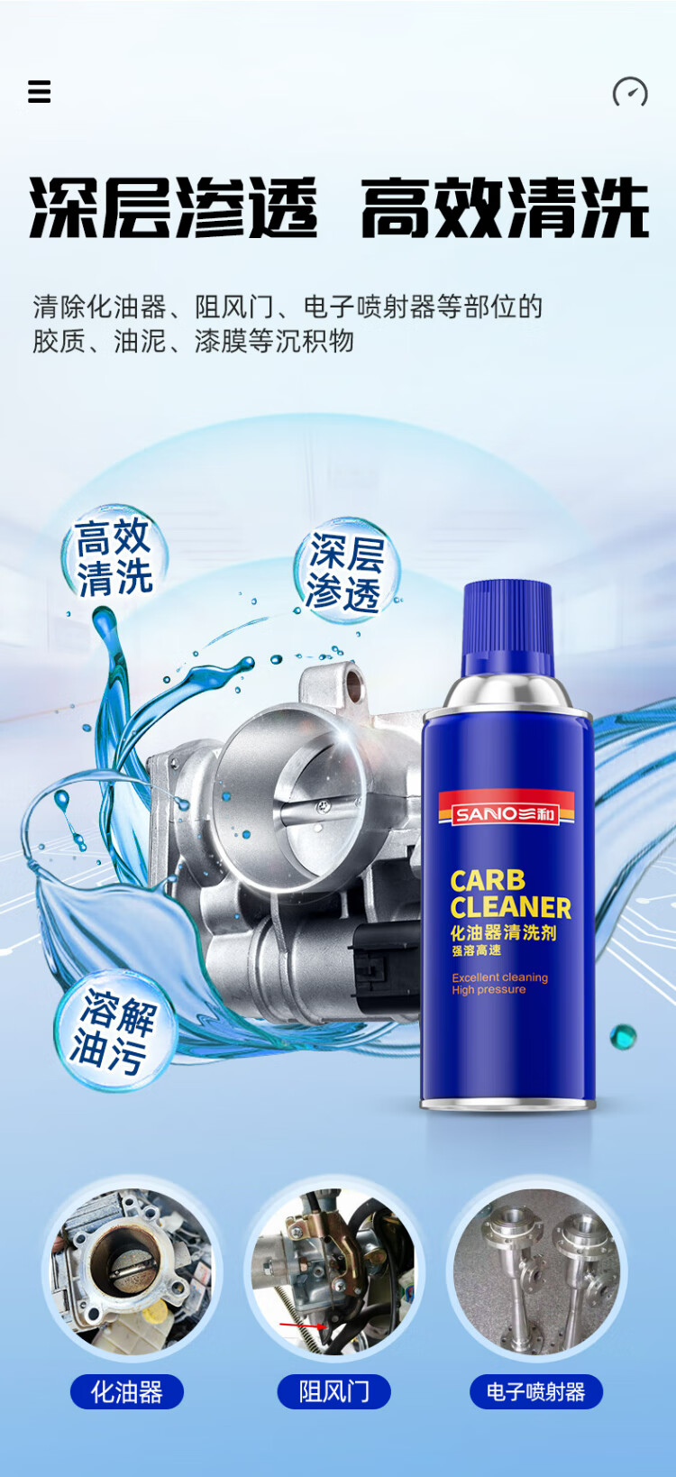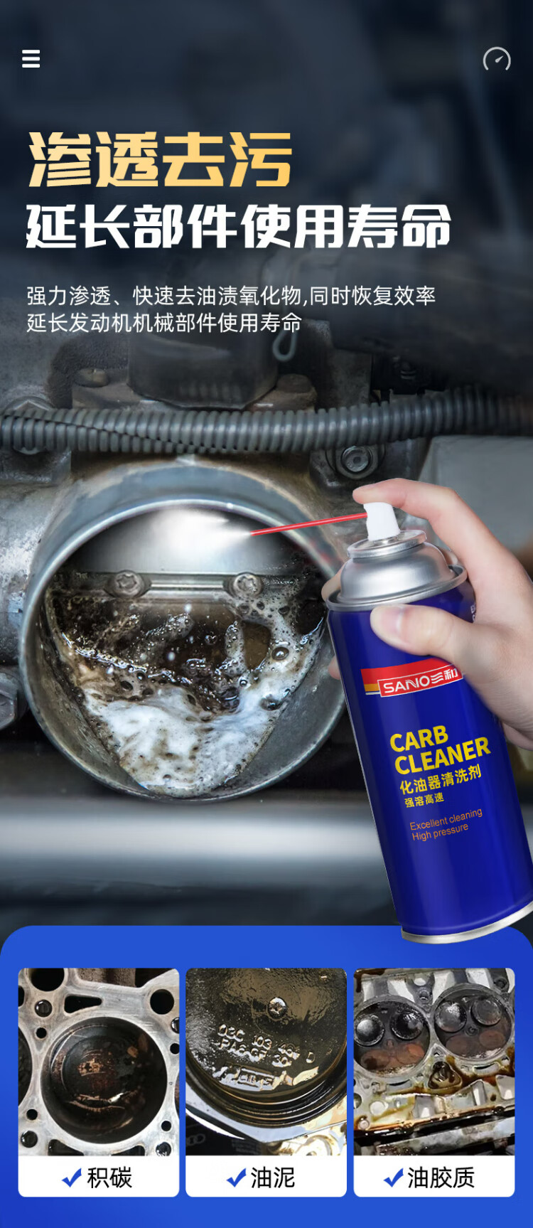 Sanhe carburetor cleaning agent car throttle choke brake pad valve stem oil cleaning 450ML