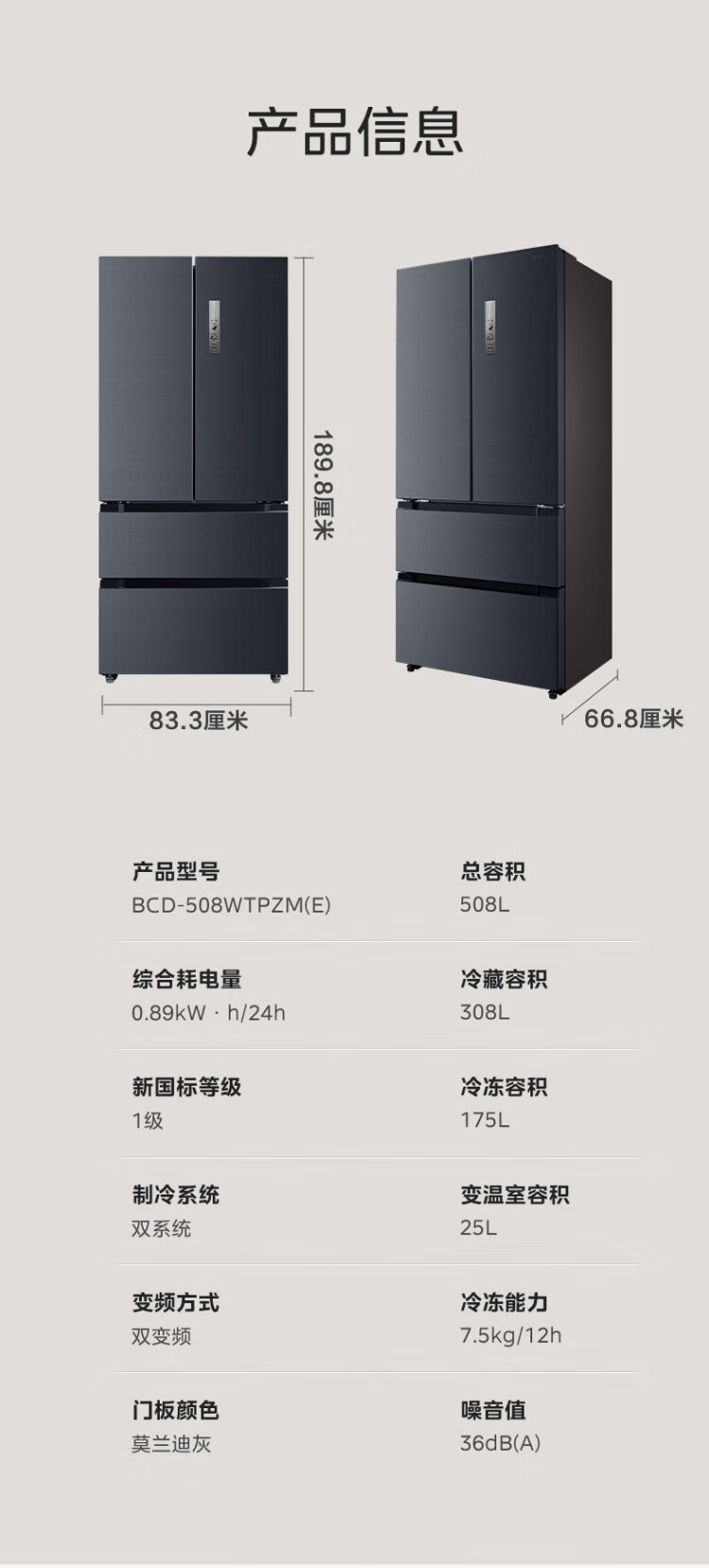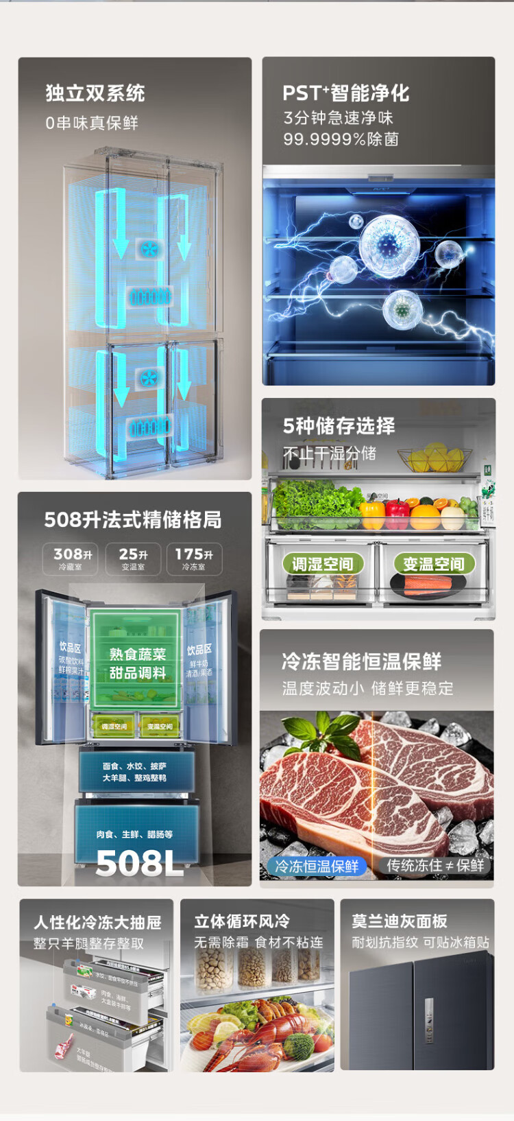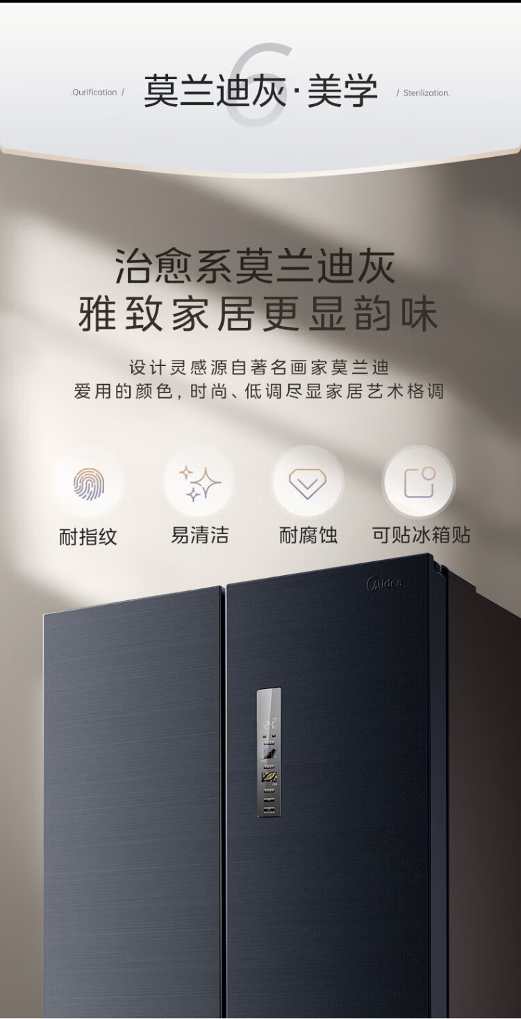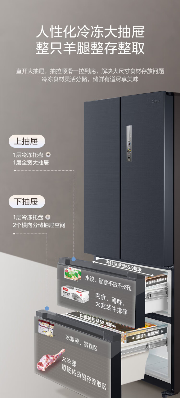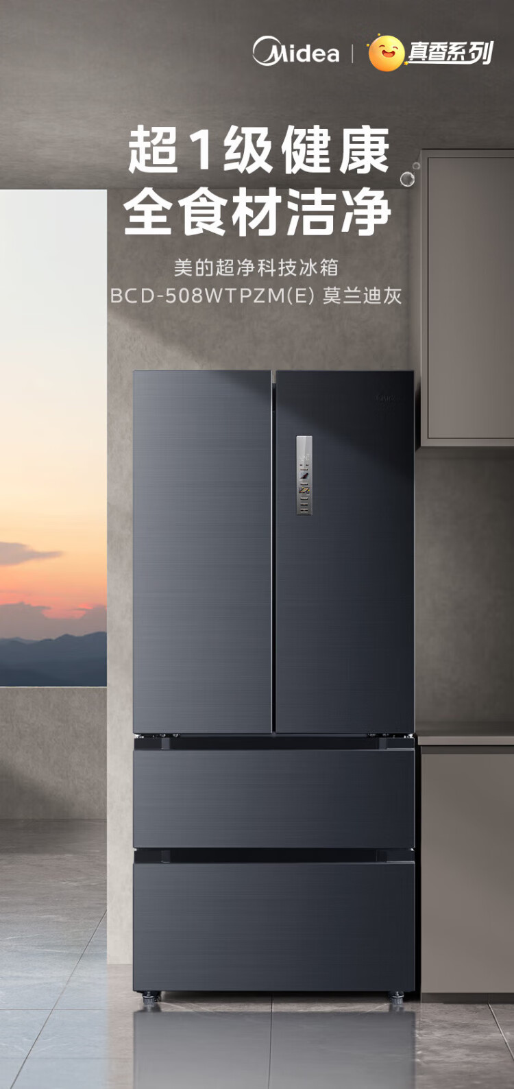 美的(Midea)508升法式多门四开门双系统双循环一级能效除菌净味大容量家用冰箱BCD-508WTPZM(E) 国家补贴20%
