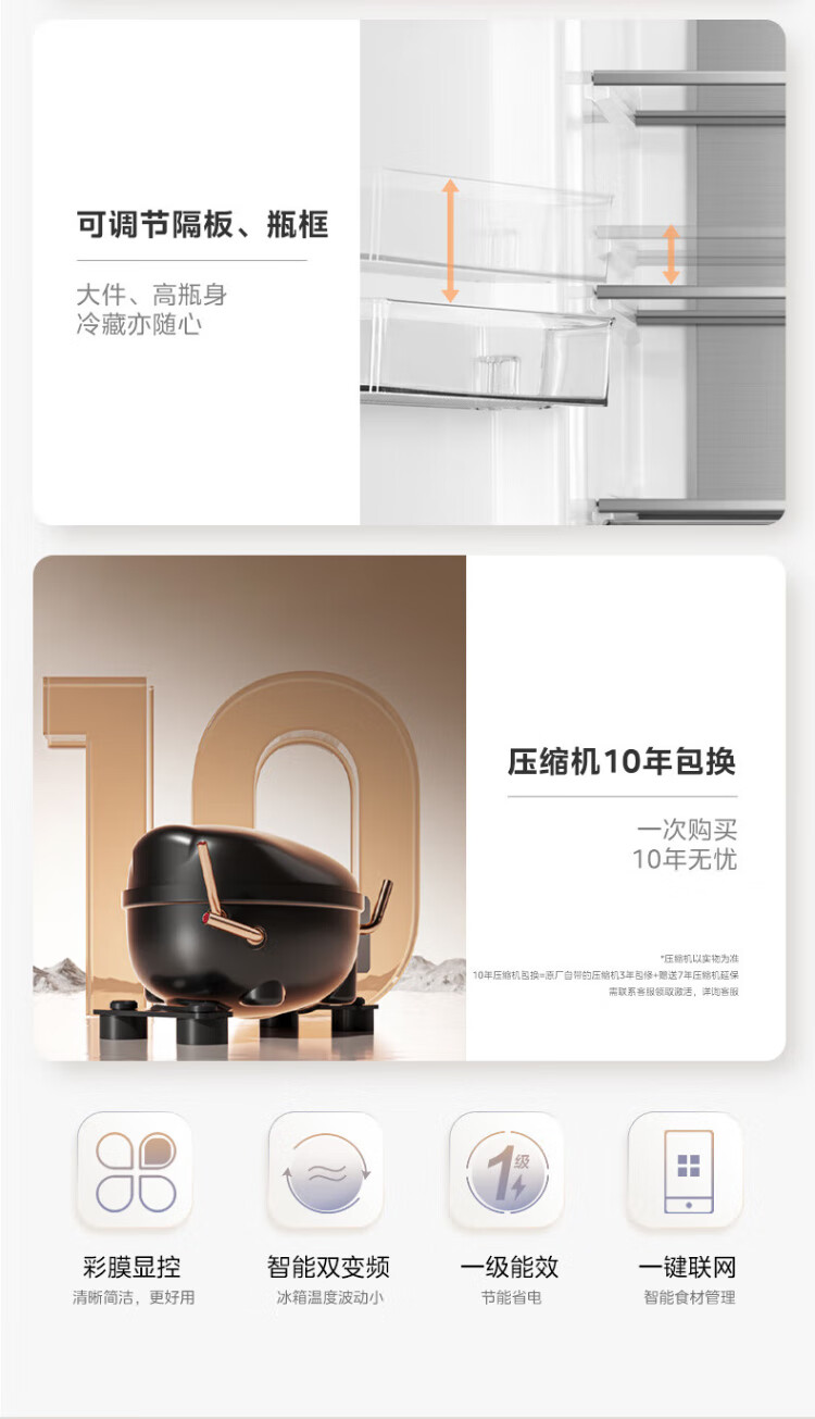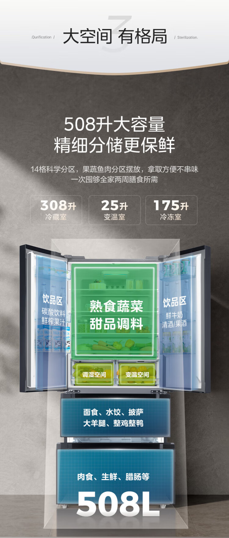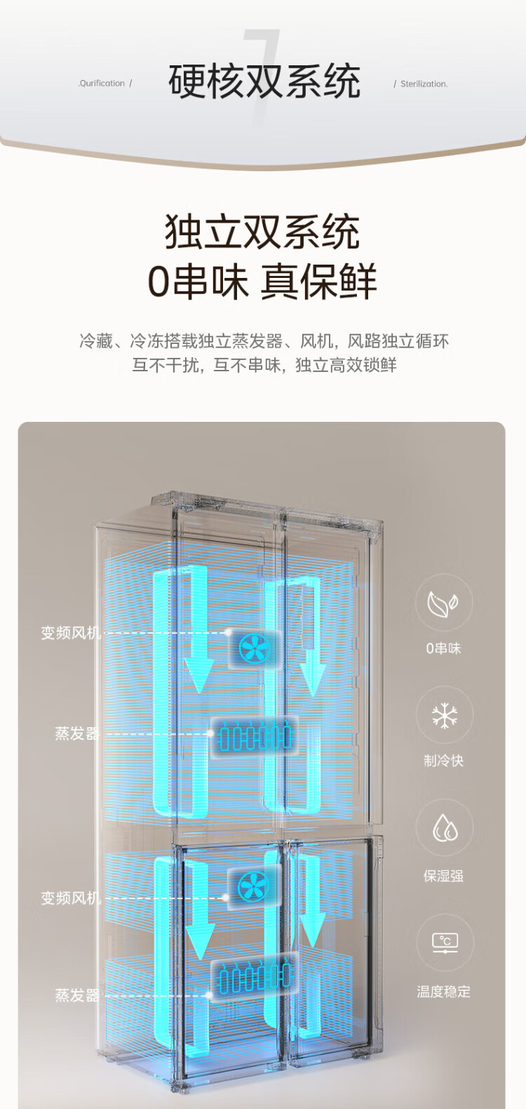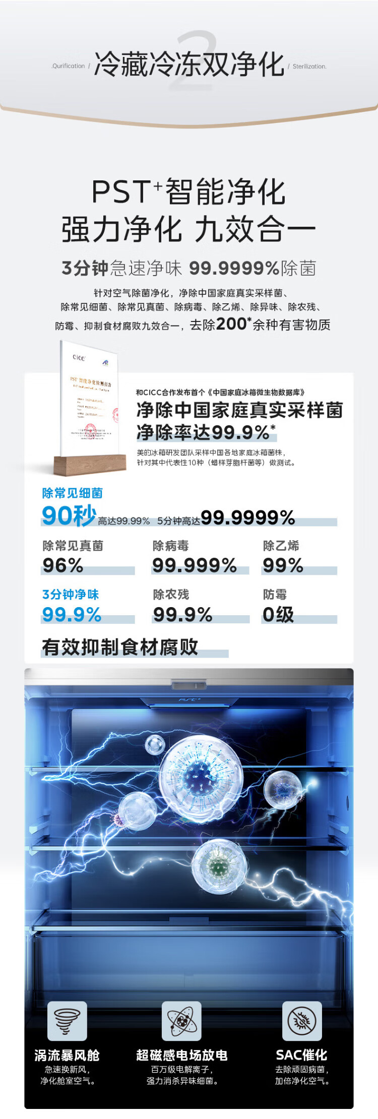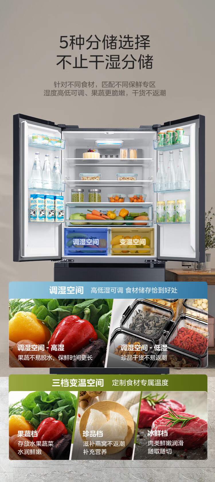 美的(Midea)508升法式多门四开门双系统双循环一级能效除菌净味大容量家用冰箱BCD-508WTPZM(E) 国家补贴20%