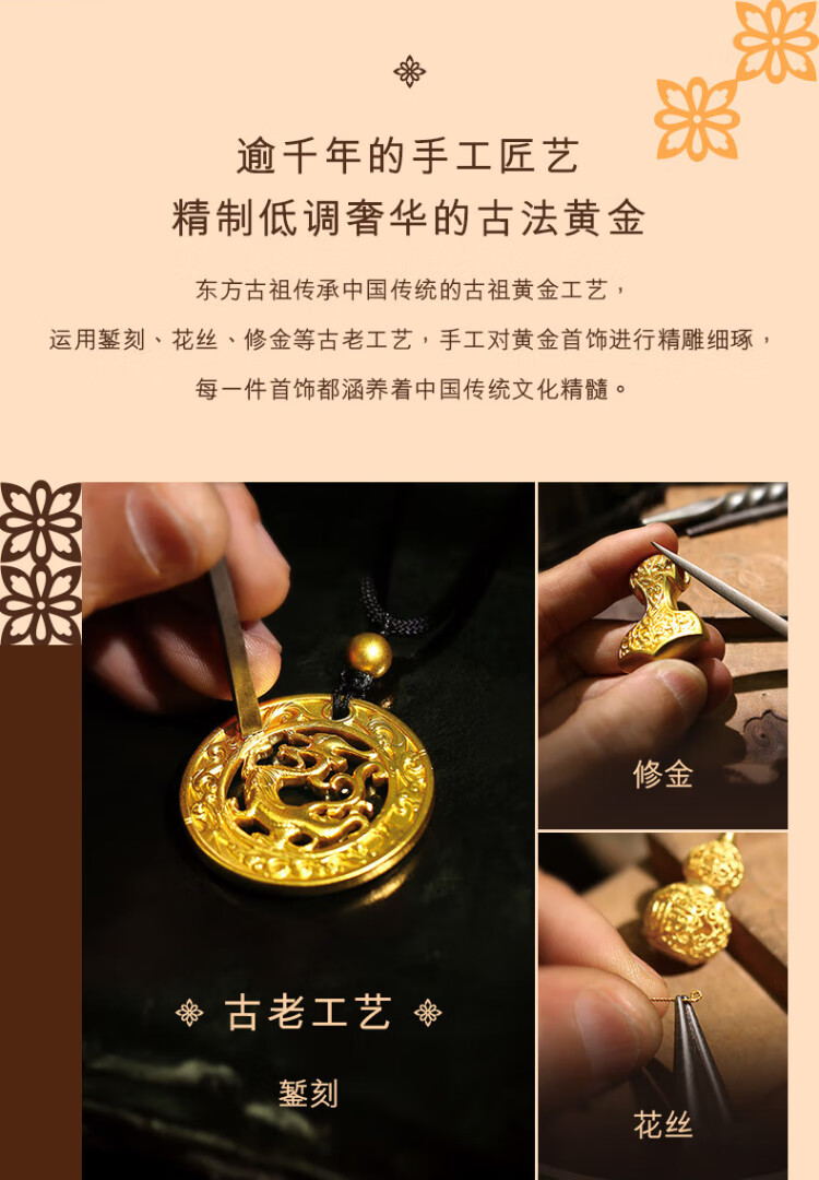 Chow Sang Sang Ancient Gold Necklace Pure Gold Heritage Gourd Pendant Rope Chain Birthday Gift 91199Z Priced at 14.5g