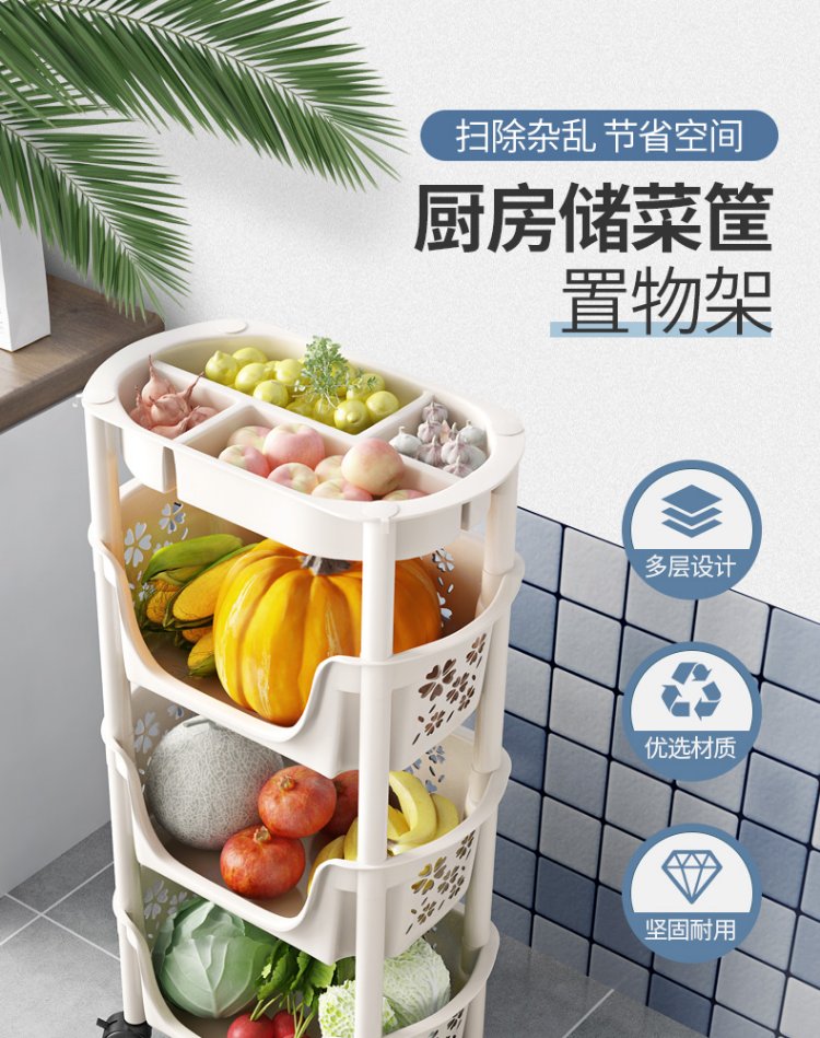 Leaijia kitchen rack fruit and vegetable storage rack floor-to-ceiling rack multi-layer storage rack household reinforced vegetable basket