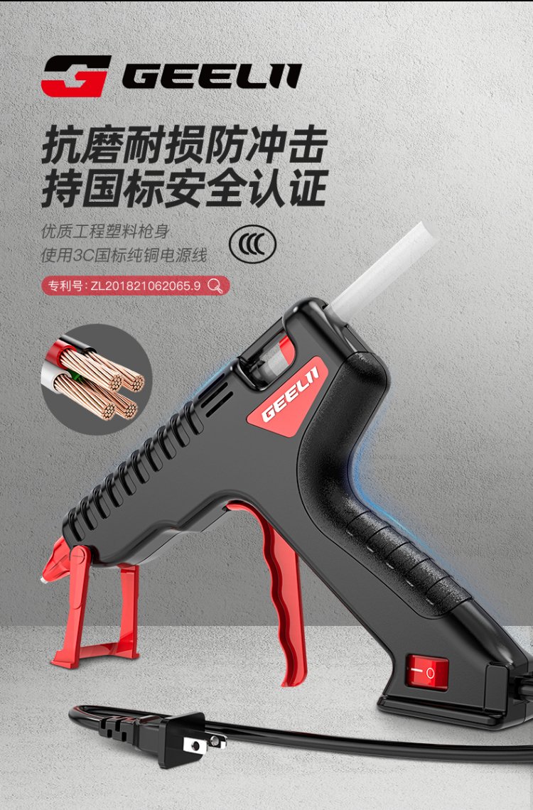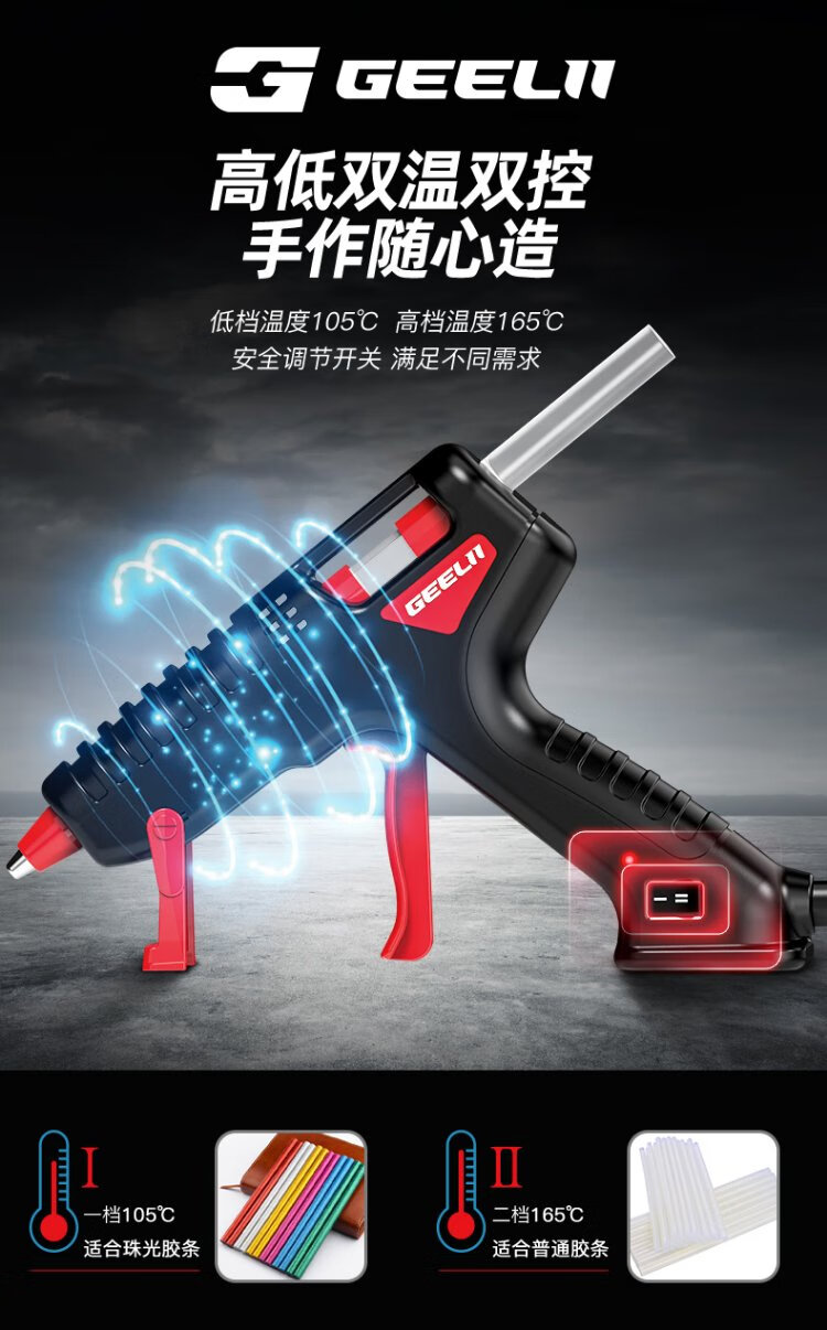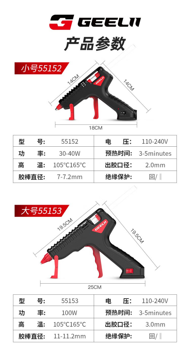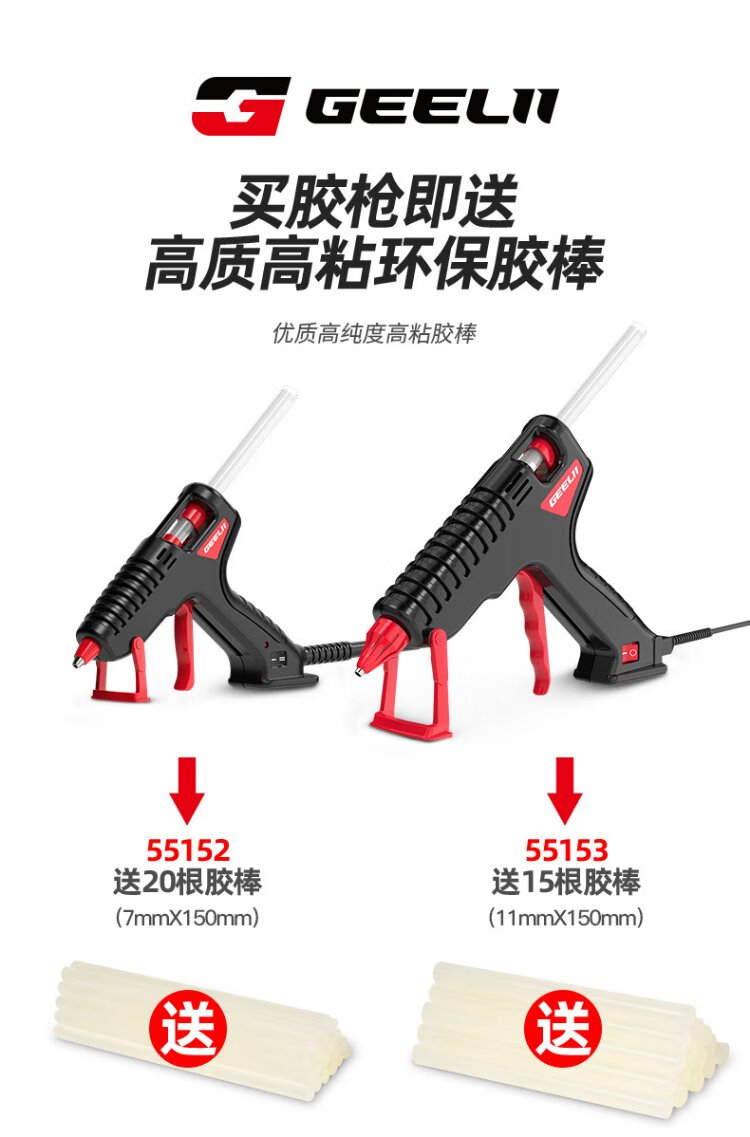 GeeLii hot melt glue gun, industrial 100W electric glue gun, handmade for home use, with 15 glue sticks 55153