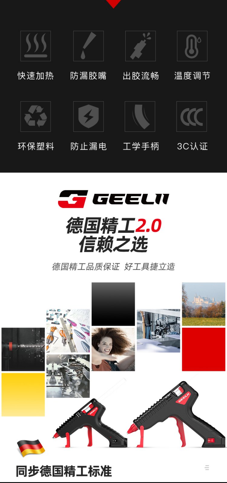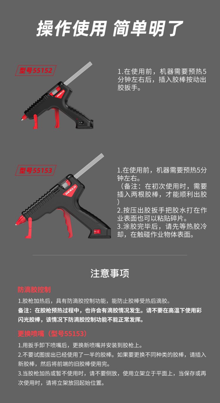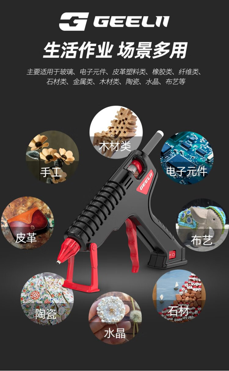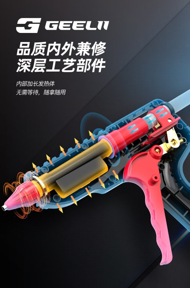 GeeLii hot melt glue gun, industrial 100W electric glue gun, handmade for home use, with 15 glue sticks 55153
