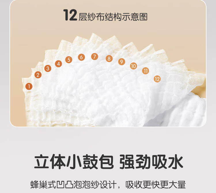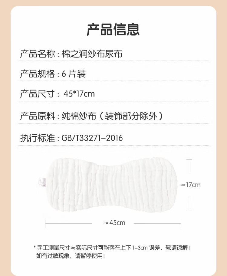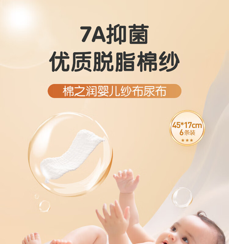 Mianzhirun baby gauze diaper pure cotton 7A antibacterial 12 layers 6 pieces pack newborn ring cloth washable 45*17cm