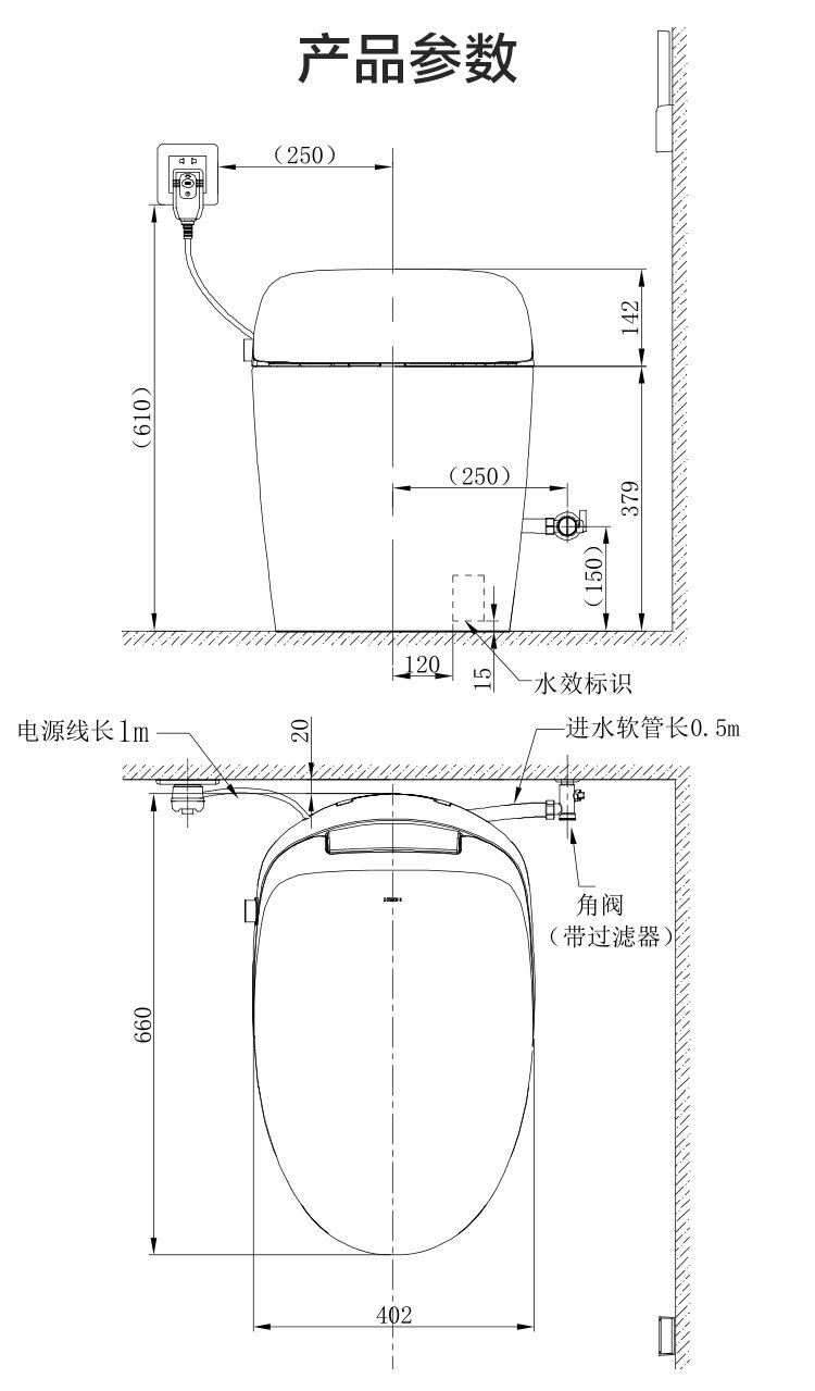 Hengjie (HEGII) smart toilet H35 unlimited water pressure with water tank foam shield smart toilet HCE863A01-305