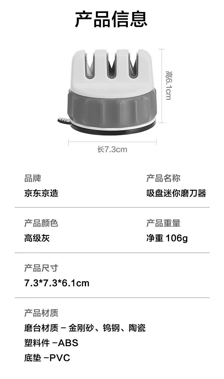 Kyoto Tokyo whetstone three-stage multifunctional suction cup sharpener mini gray and white