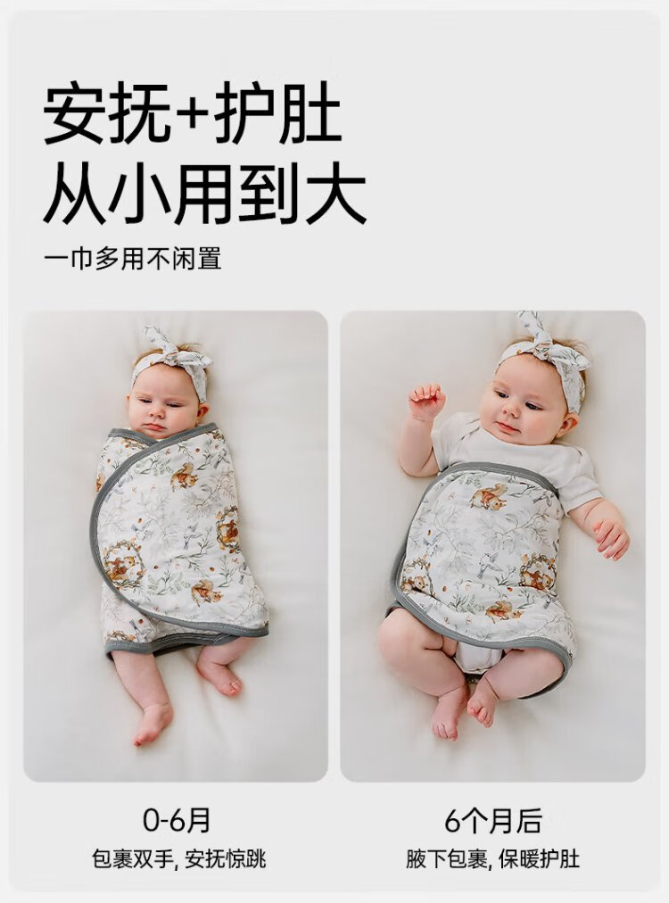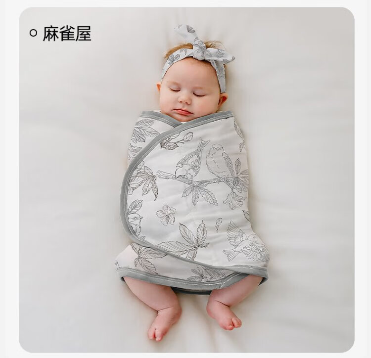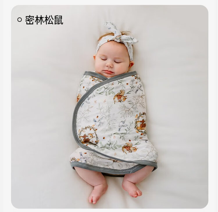 OUYUN baby anti-jump sleeping bag swaddle spring and summer newborn swaddling silk gauze quilt Jungle Squirrel 80x35