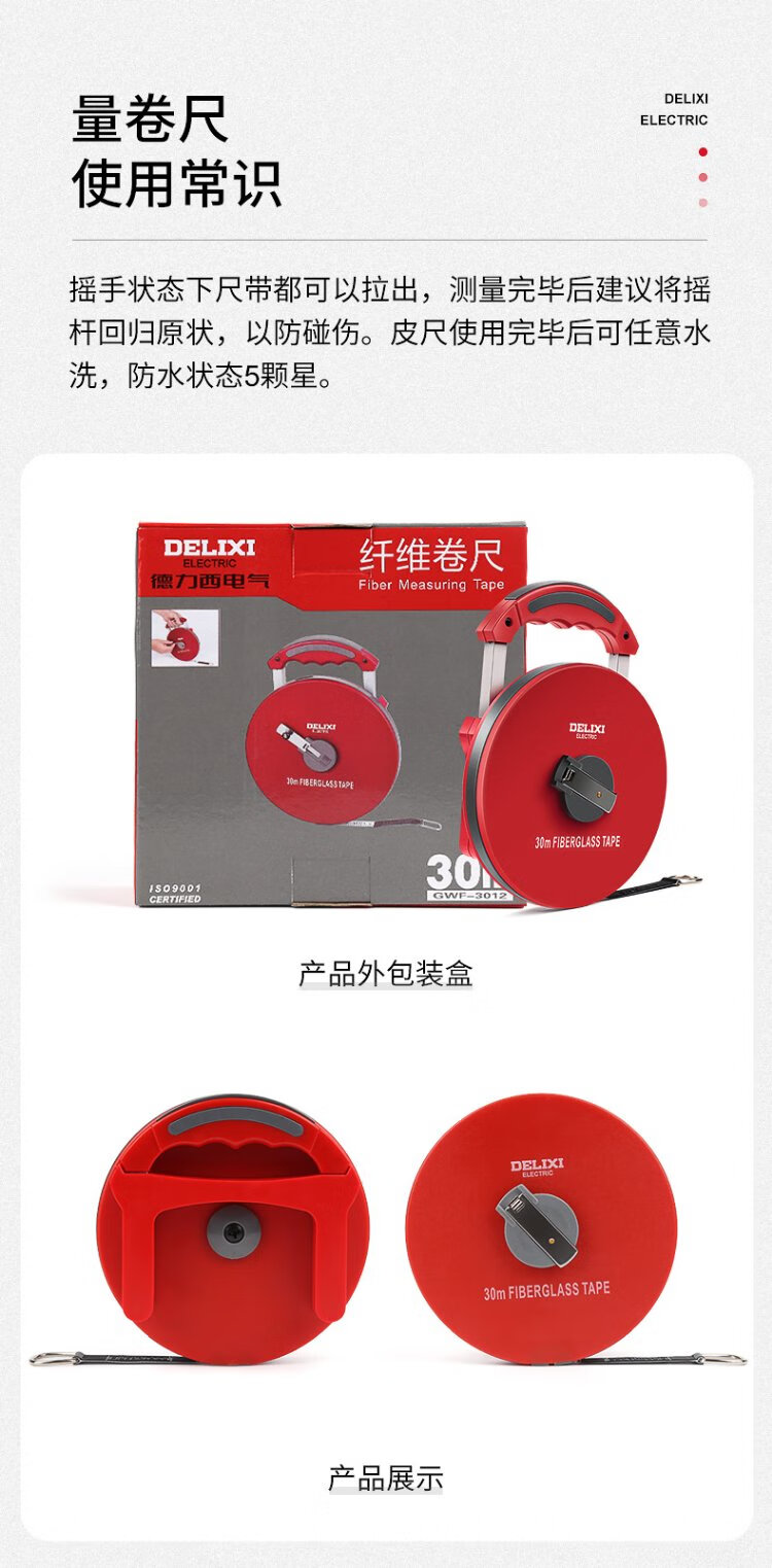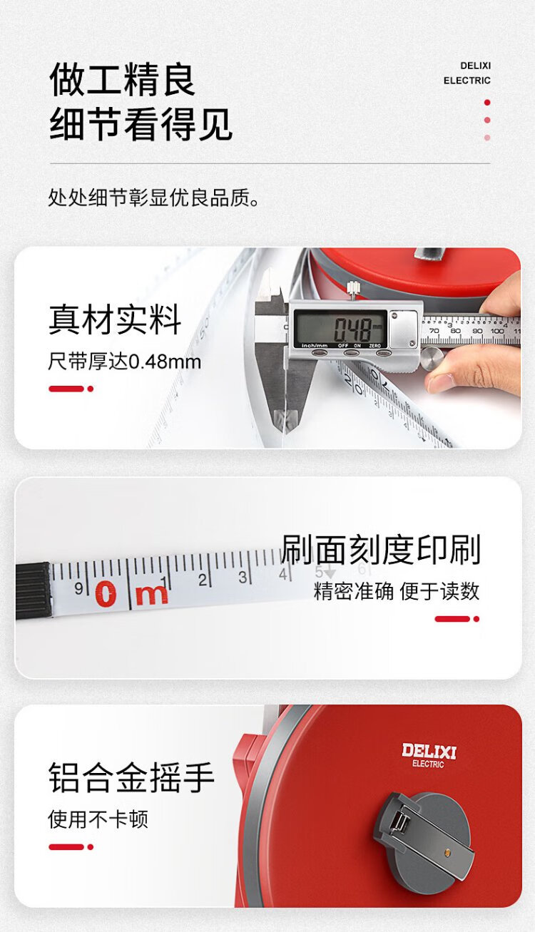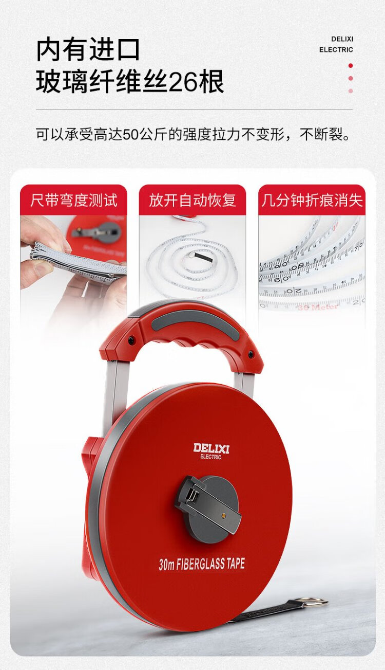 Delixi Electric fiberglass tape measure engineering measurement leather tape measure accurate variable speed soft tape measure home 50 meters