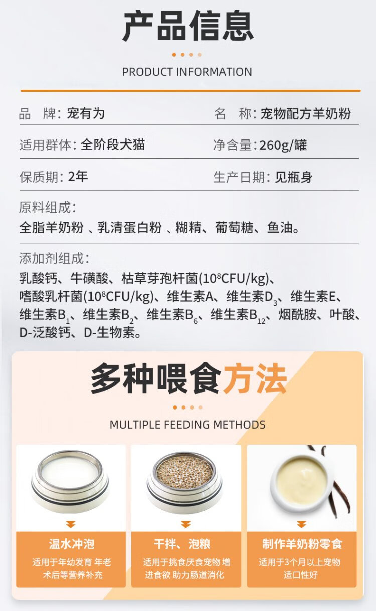 Pet Youwei Pet Goat Milk Powder 260g Dog Milk Powder Cat Goat Milk Powder Newborn Puppy Cat Milk Powder Pregnant Dogs and Cats