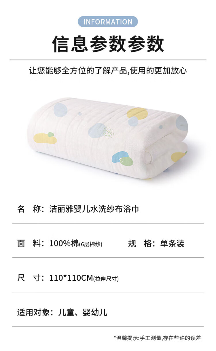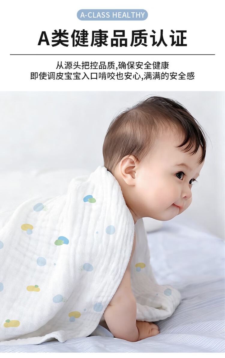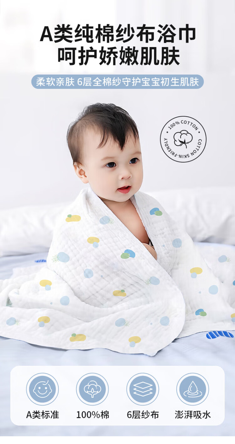 Jie Liya (Grace) Class A pure cotton baby gauze bath towel male and female baby bath towel newborn supplies large towel quilt 110*110cm