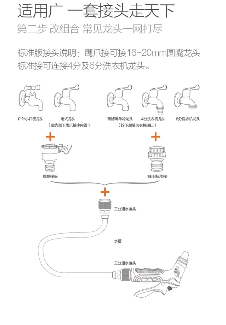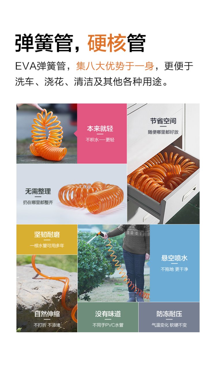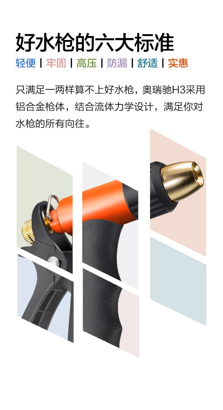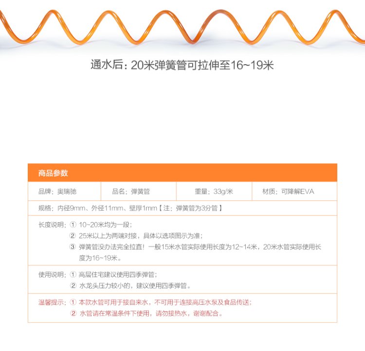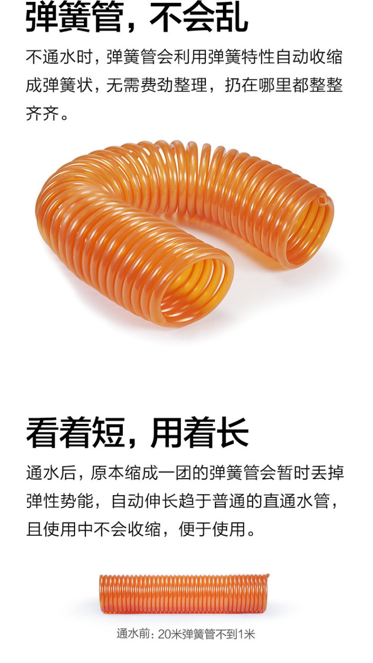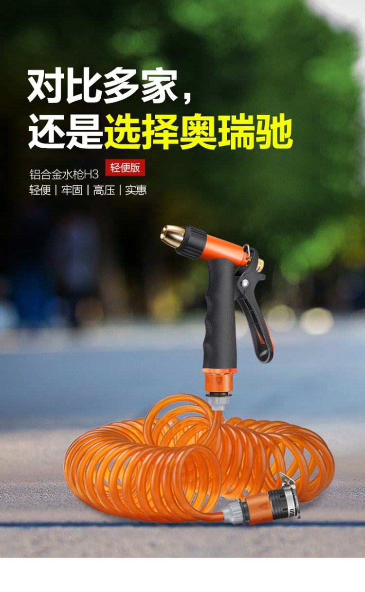Orichi household hose high-pressure car wash water gun telescopic spring water pipe nozzle set H3+ connector + 15m spring pipe