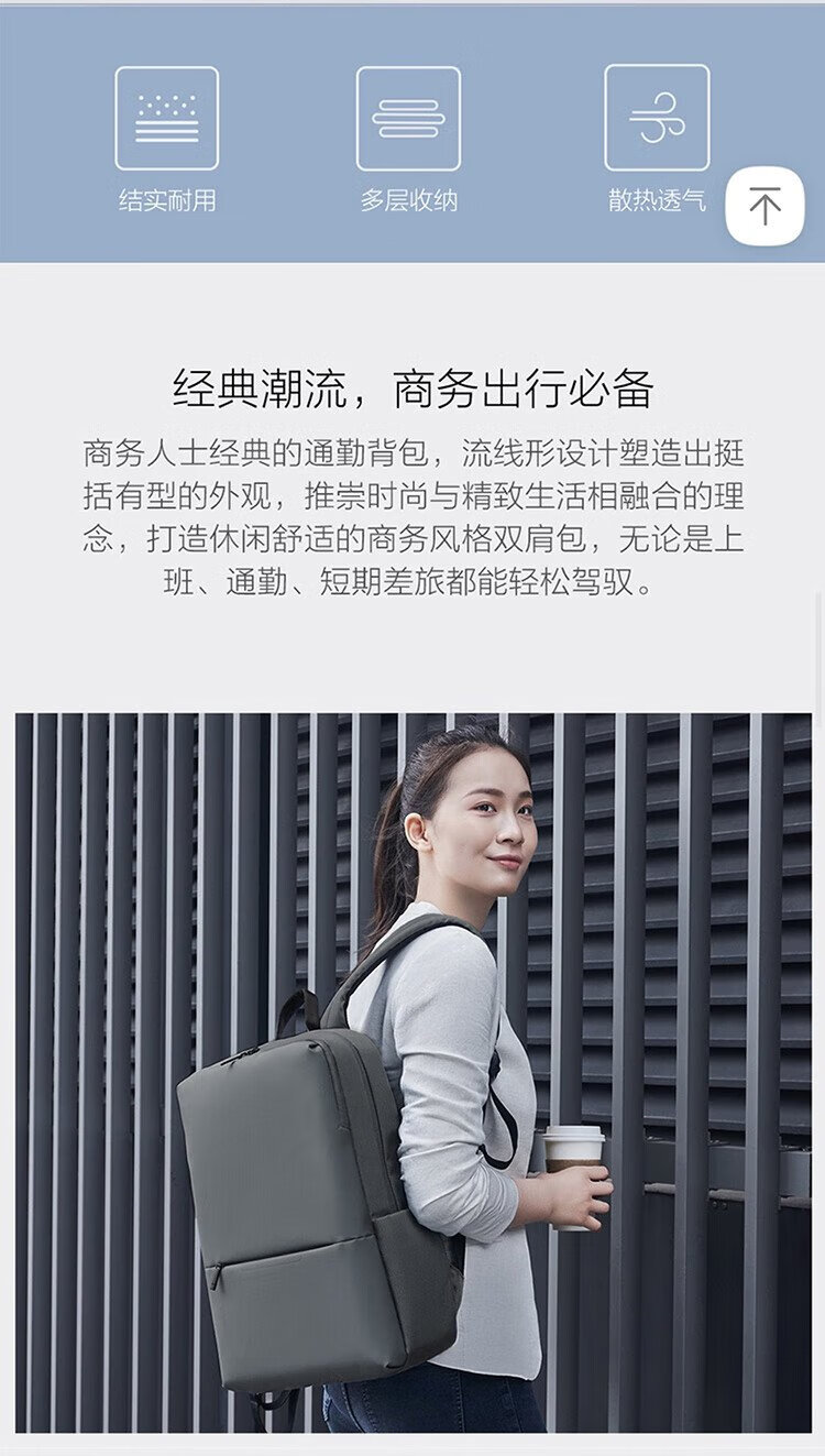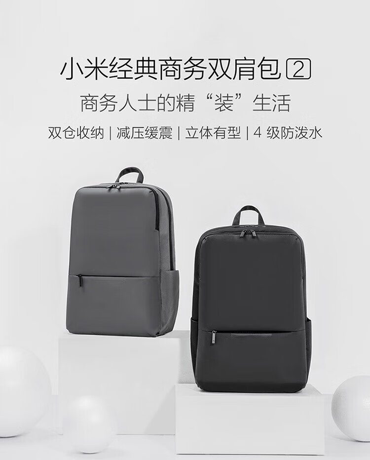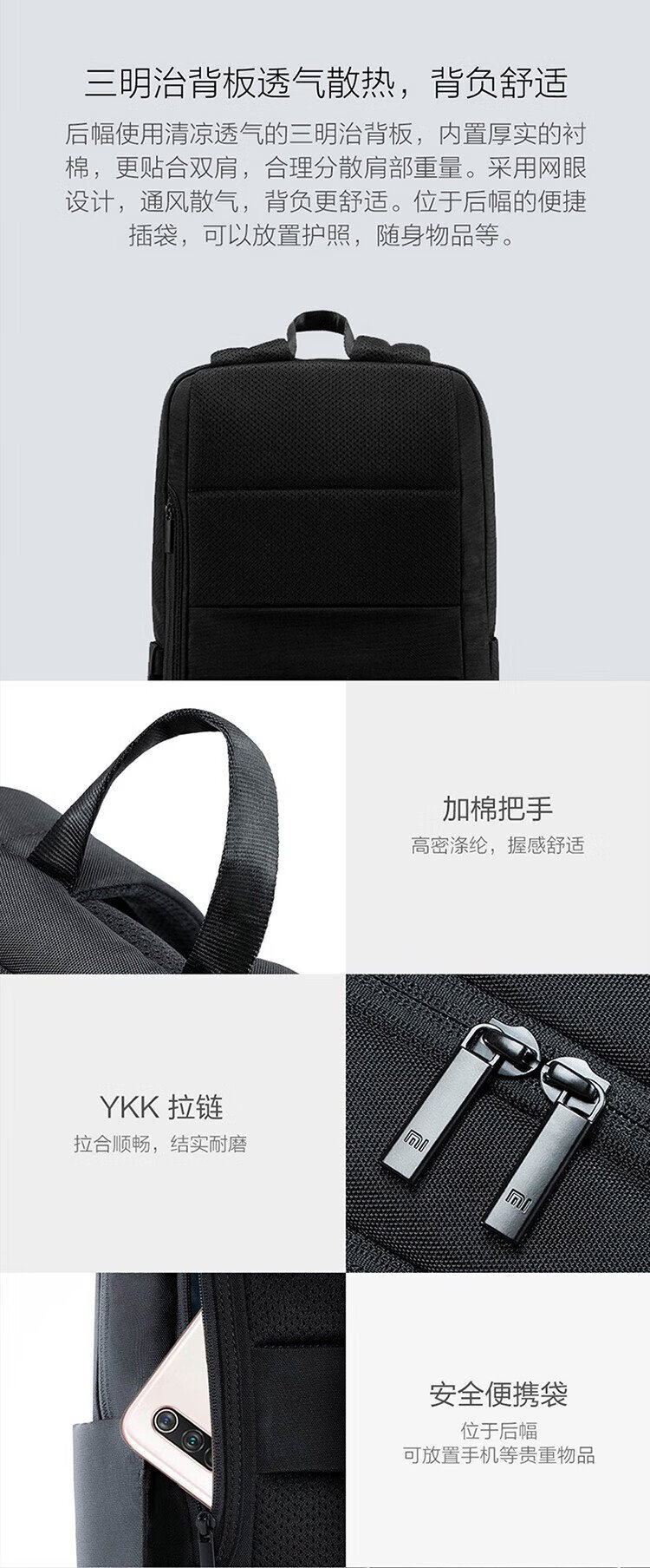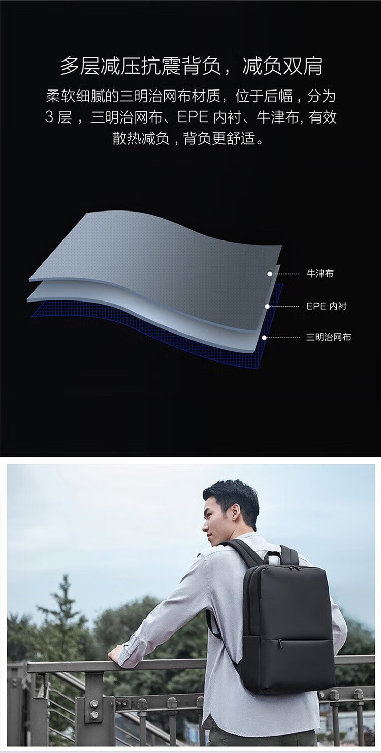 Xiaomi (MI) Classic Business Backpack Simple Business Laptop Backpack Male and Female Student School Bag Black