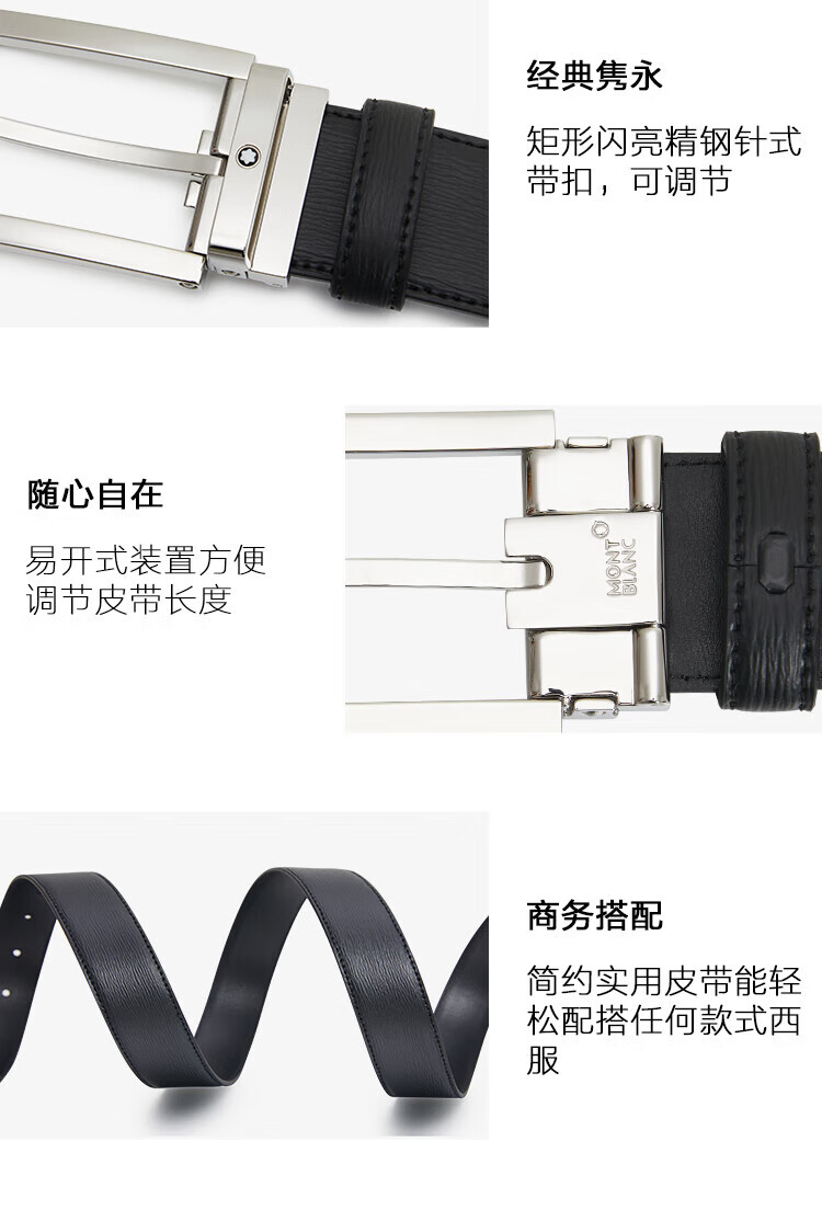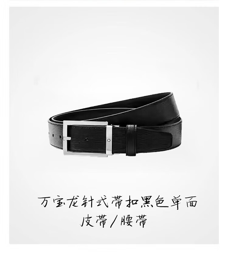 Montblanc MONTBLANC pin buckle black single-sided belt belt 3.5cm 114435 gift Double 11
