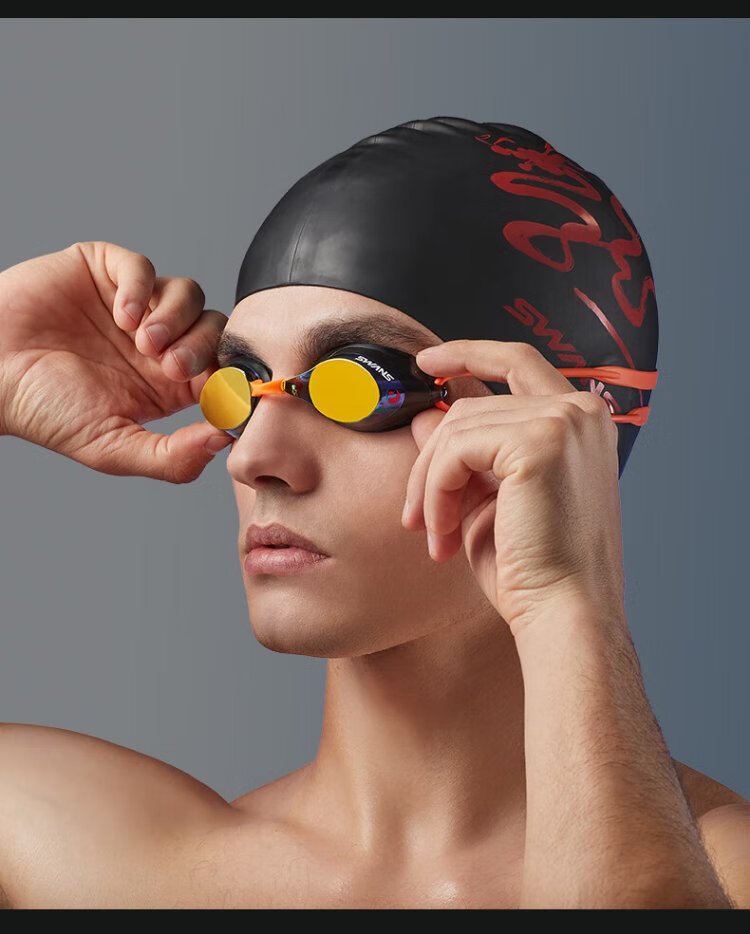 SWANS swimming goggles imported from Japan for men and women waterproof and anti-fog high-definition professional racing coated swimming goggles swimming equipment orange