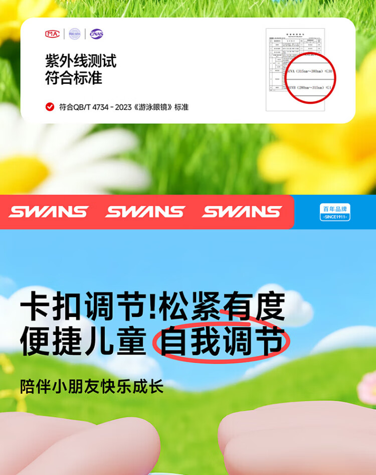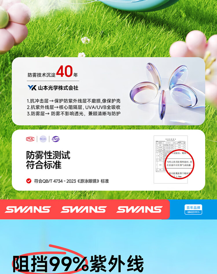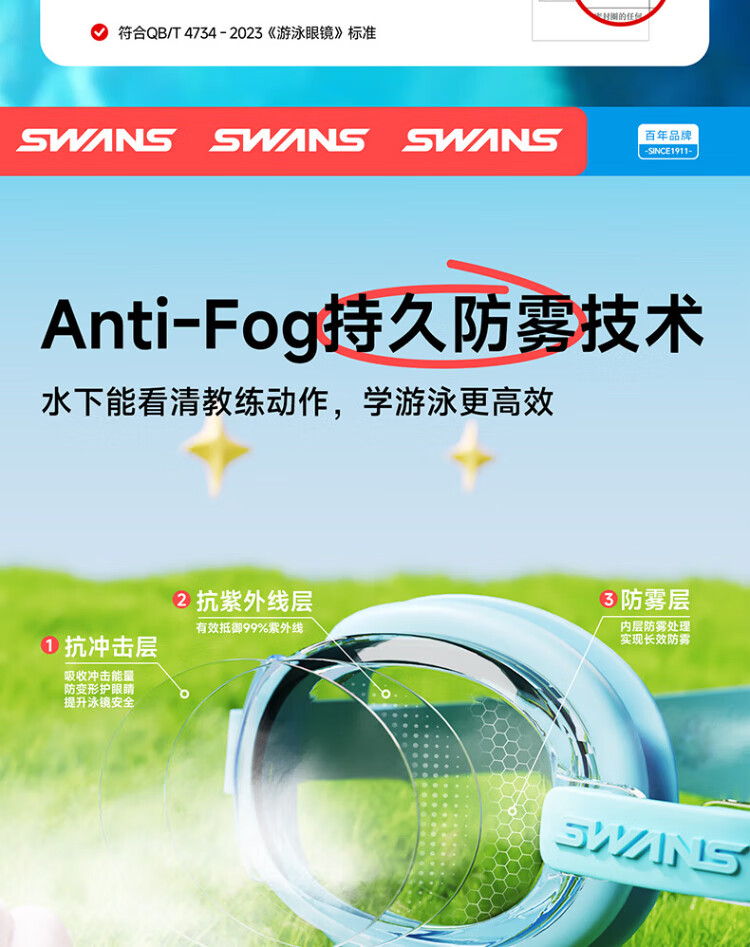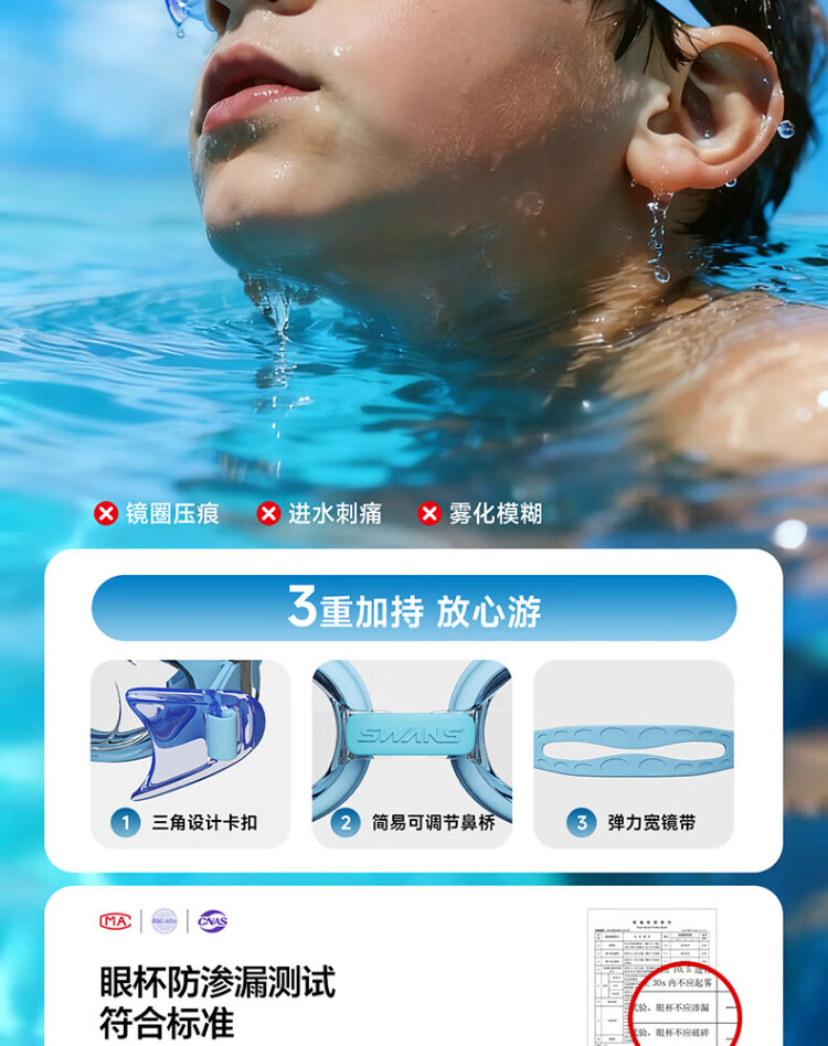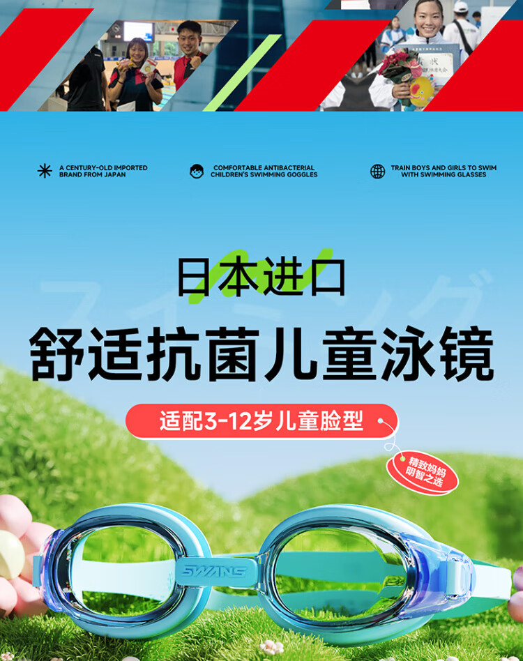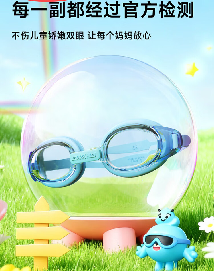 SWANS children's Japanese imported swimming goggles men's high-definition waterproof and anti-fog girls' large-frame swimming goggles swimming equipment lake blue